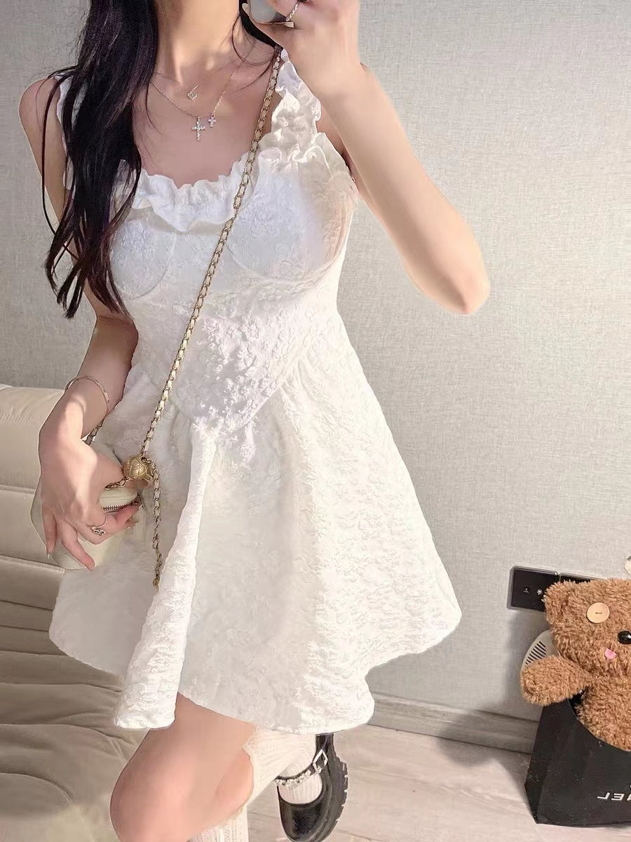 Step into the scene with White Embroidered Fit And Flare Ruffle Neck Mini Dress, a must-have vacation mini dress designed for vacation moments. The fit & flare silhouette hugs the body for a sleek and defined look. Comfortable yet elevated, it’s ideal for evening events, birthday plans, or your next city outing. Add some glam with accessories or keep it simple,it works either way. A perfect white addition to your occasion-ready wardrobe.