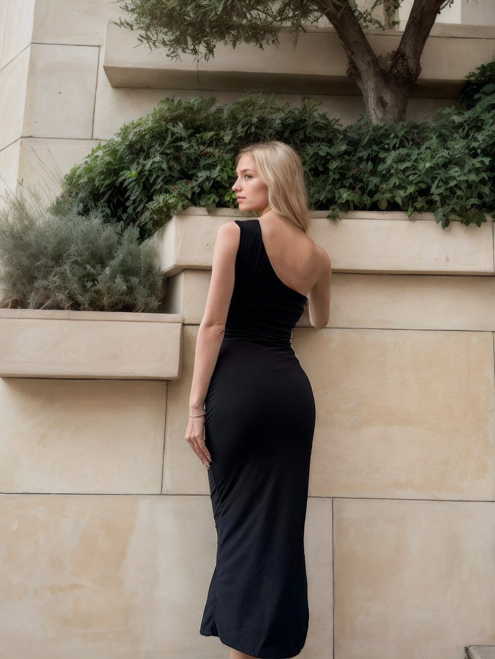 Make a statement with the Black High Slitted Cut Out Dress from Outzidr. Designed with daring cut-out details and a bold high slit, this midi dress combines elegance and edge for a perfect party look. Turn heads and exude confidence wherever you go.