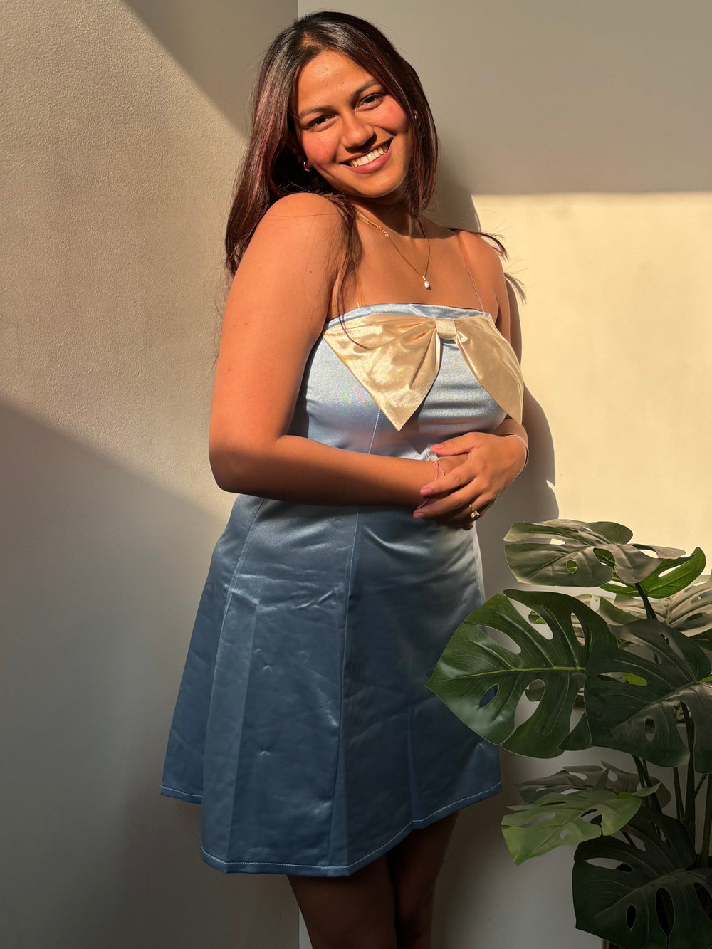Looking for a Tube Dress With Bow Detailing? Look no further.blueDresses and jumpsuits, Mini, Party, Women Polyester