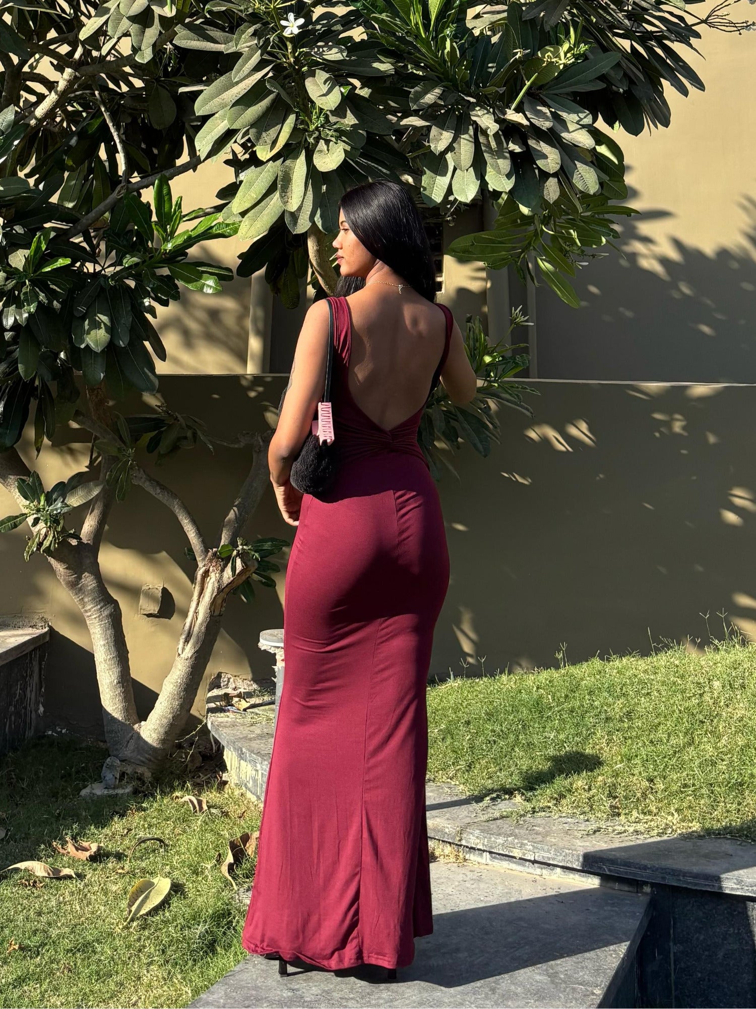 Looking for a Fitted Maxi Dress? Look no further. Maroon Dresses and jumpsuits, Maxi, Party, Travel, Vacay, Women Polyester