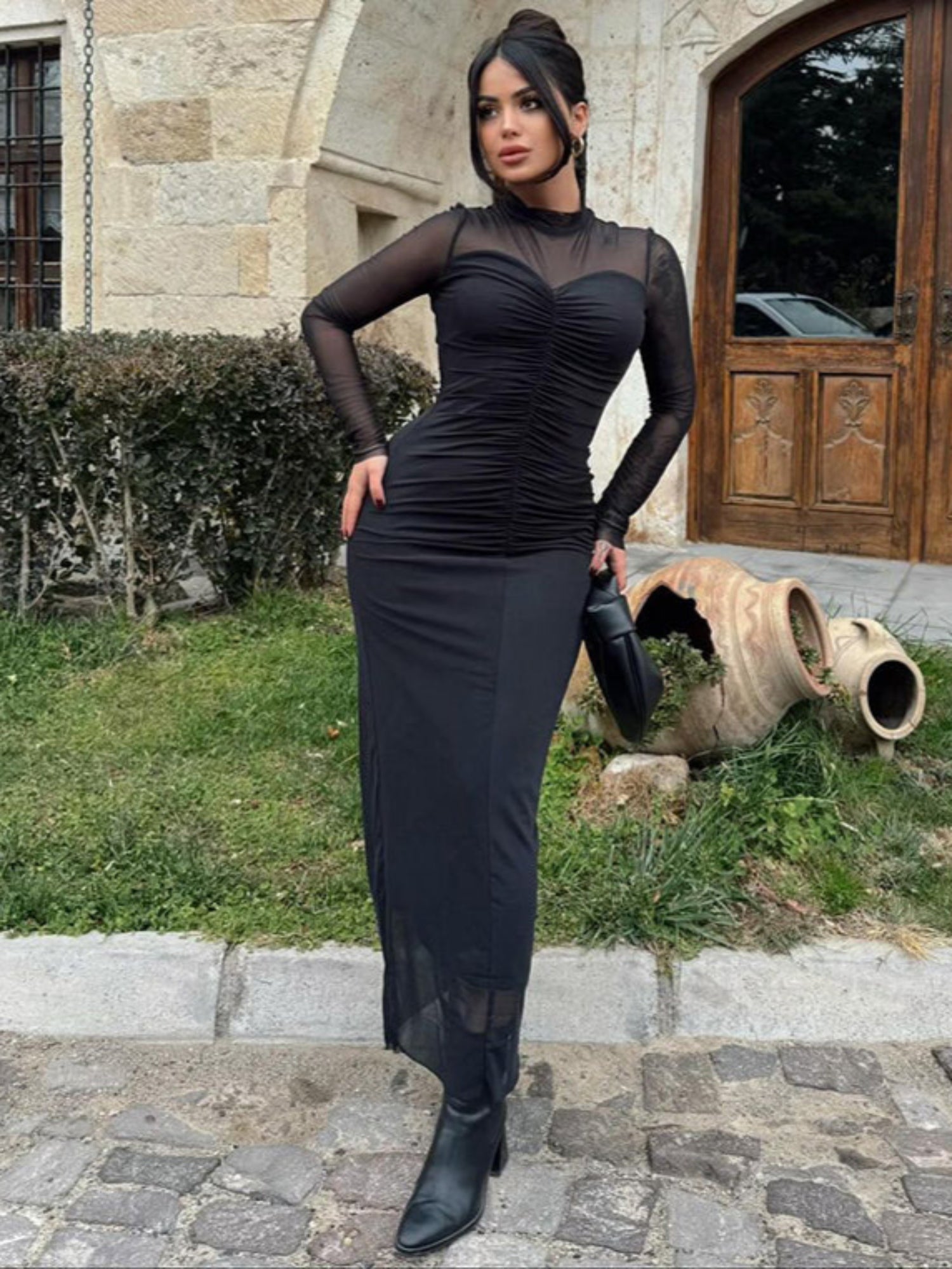 Looking for a Mesh Inserts Maxi Dress? Look no further.blackDresses and jumpsuits, Maxi, Mini, Party, Women Polyester