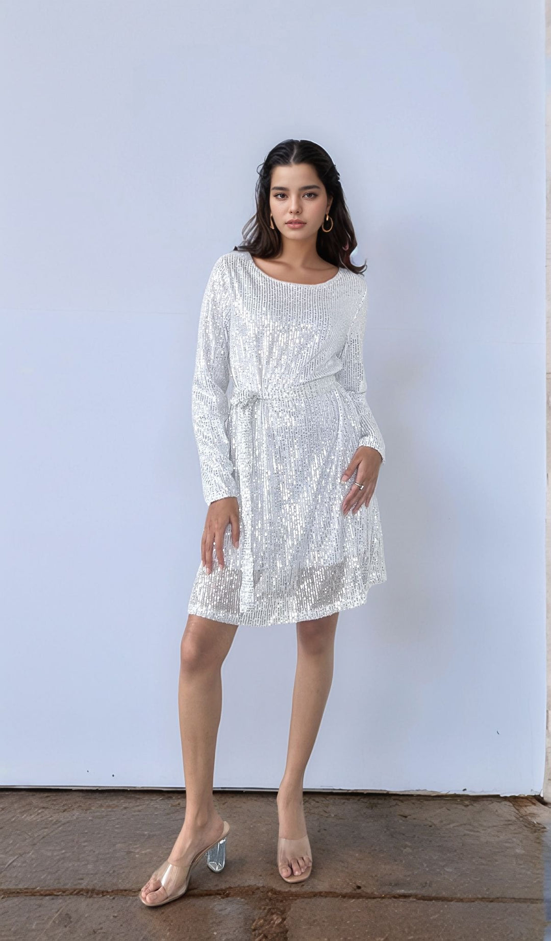 Silver Sequined Mini Dress