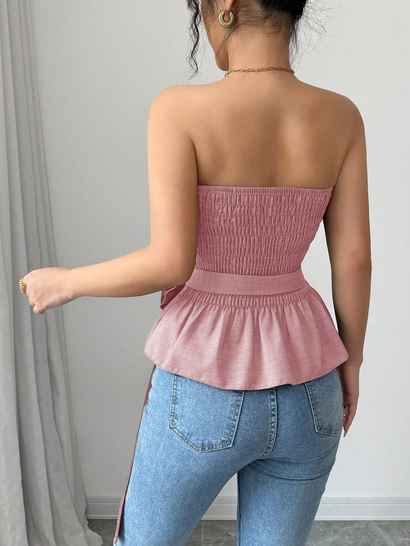 Pink Strapless Smocked Top