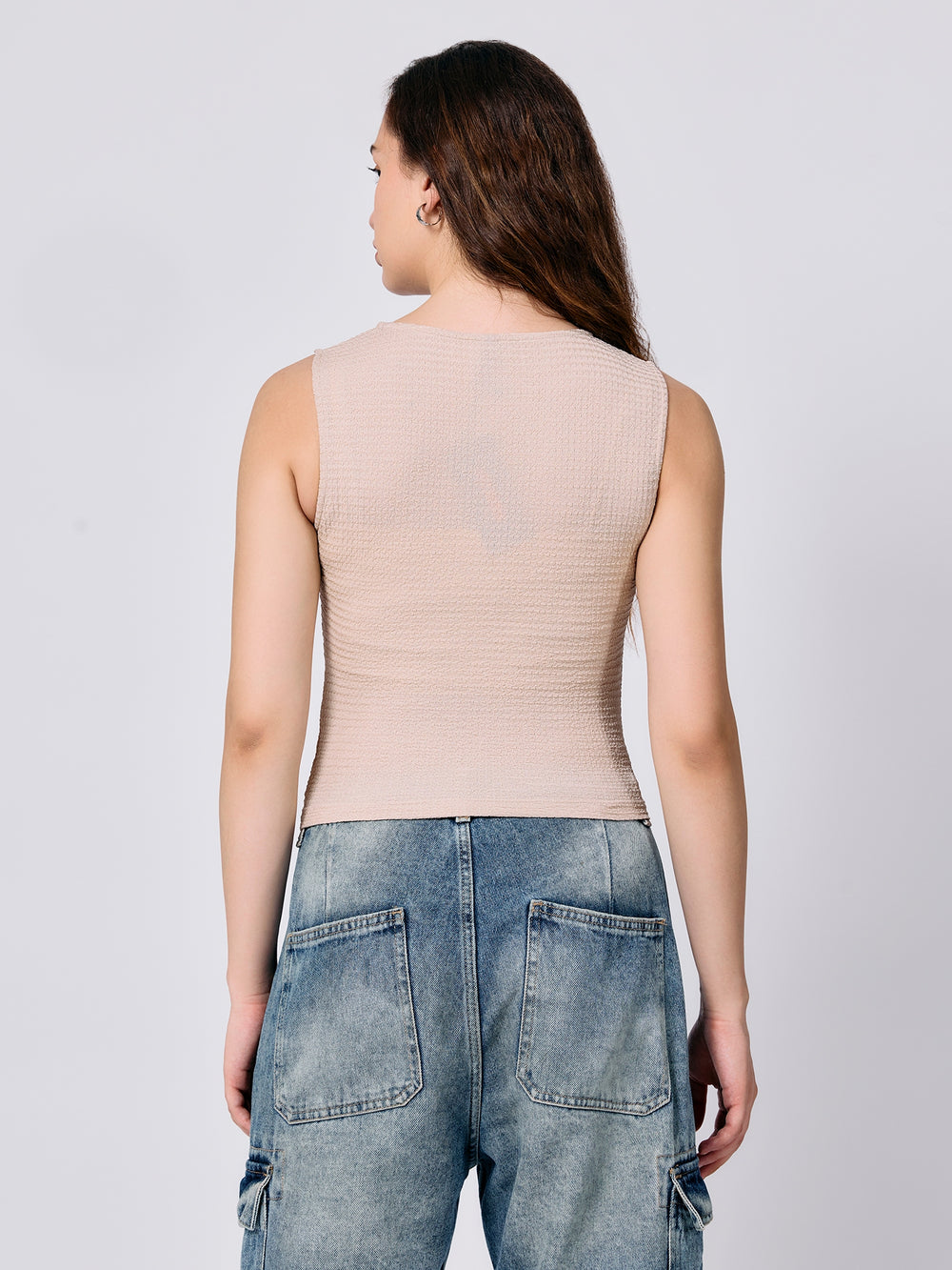 The Beige Textured Assymetric Hem Tank is built for real plans and real movement. Bold in beige, this casual wear transitions easily from daywear to after-dark fits. Finished with attention to ease and flow.
