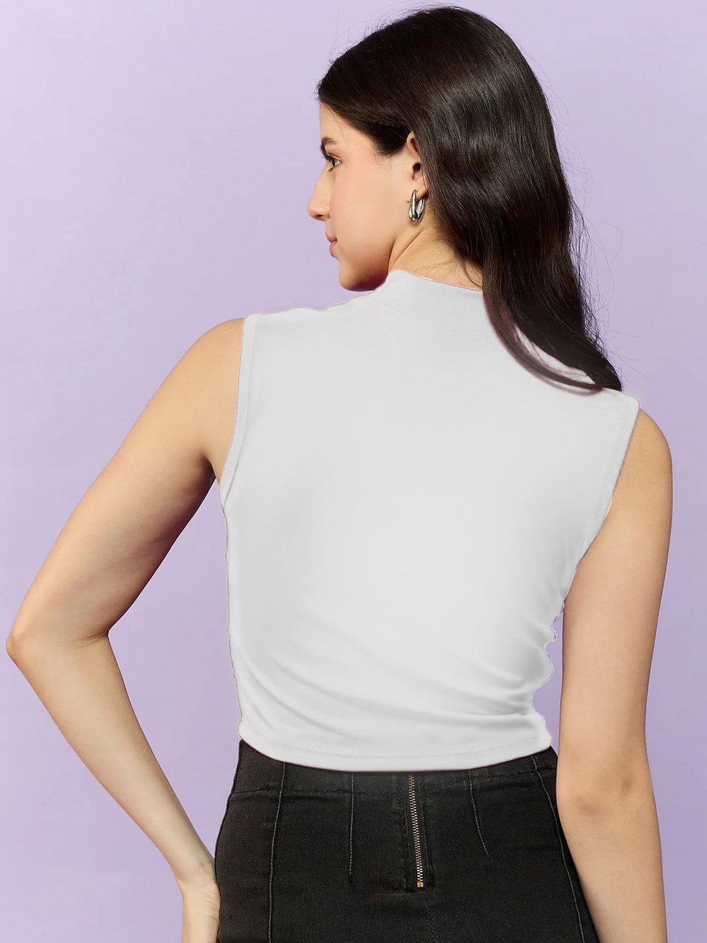 The White High Neck Side Ruched Top is built for the ‘out in five’ kind of energy. When street wear is on your agenda and chill is the brief, this top is ready to go. Get dressed, get out.