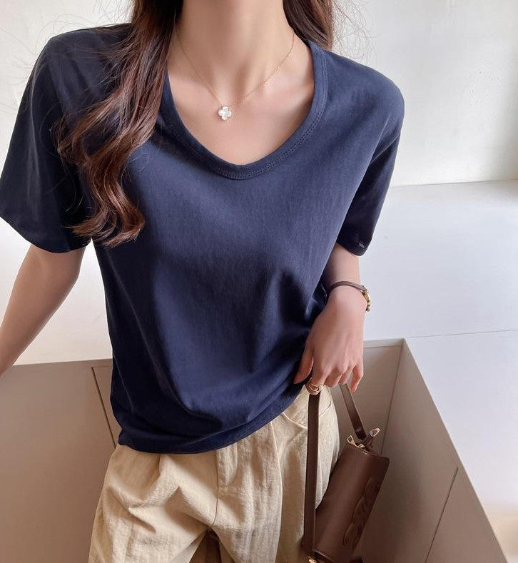 Navy Blue Relaxed Fit Solid T-Shirt