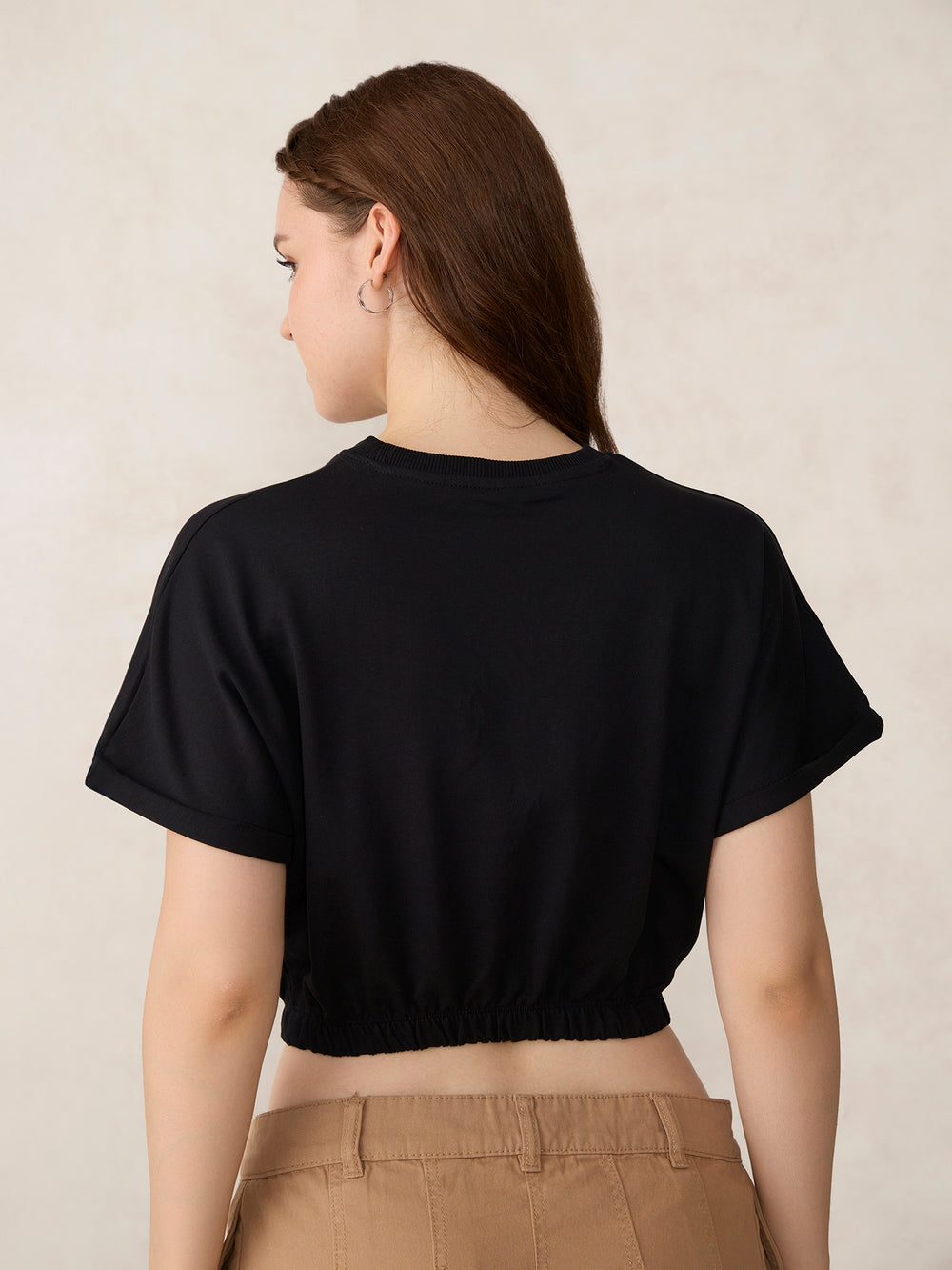Black Boxy Cropped Elasticated Hem Sweatshirt