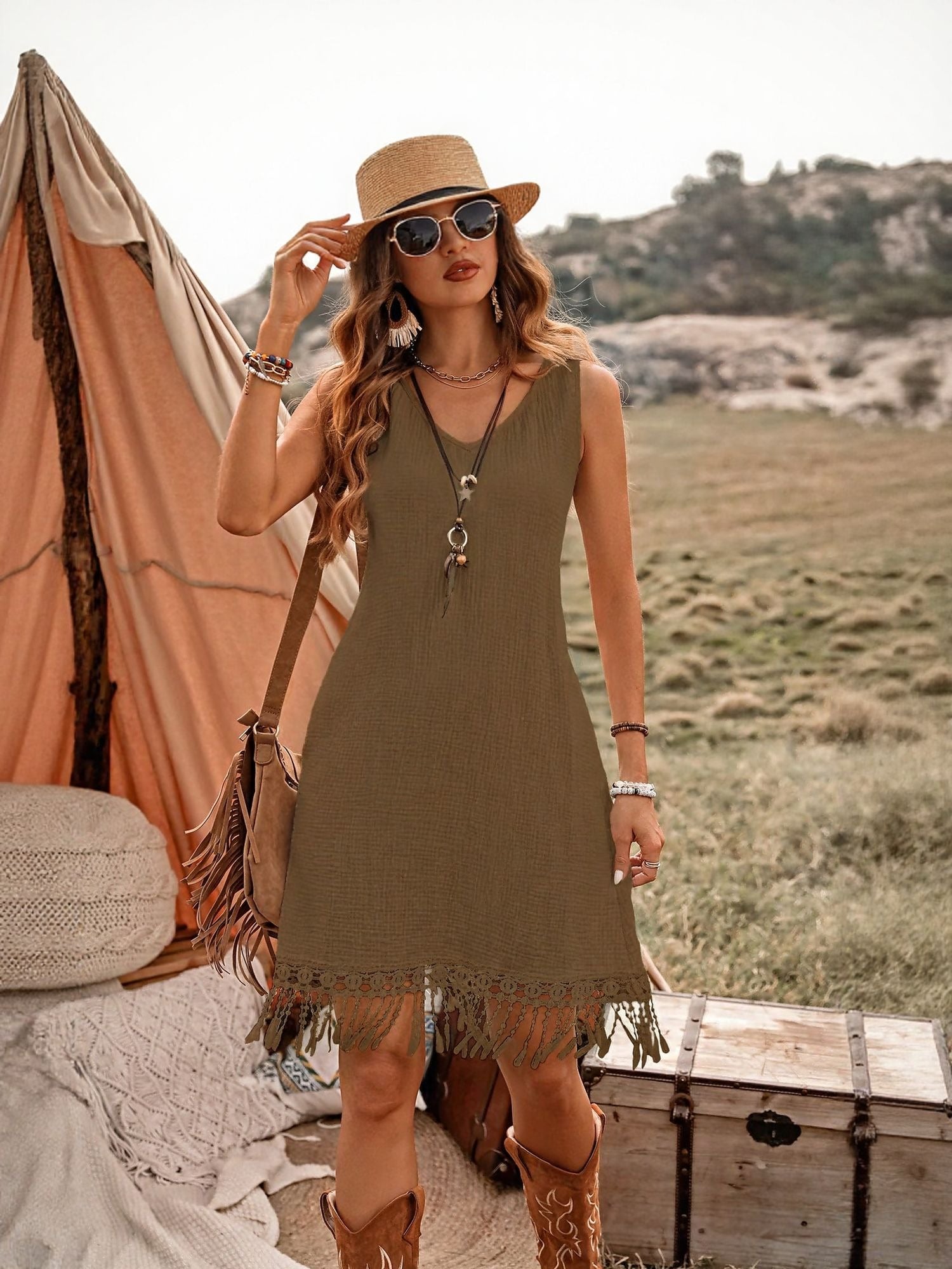 Olive Lace Detail Mini Dress is made for stepping out. With its a-line frame and bold shape, this vacation mini dress is ideal for vacation moments. The this color gives it standout appeal, while the design ensures a secure, comfy fit. Whether it's your first plan or your fifth, this dress can handle it.