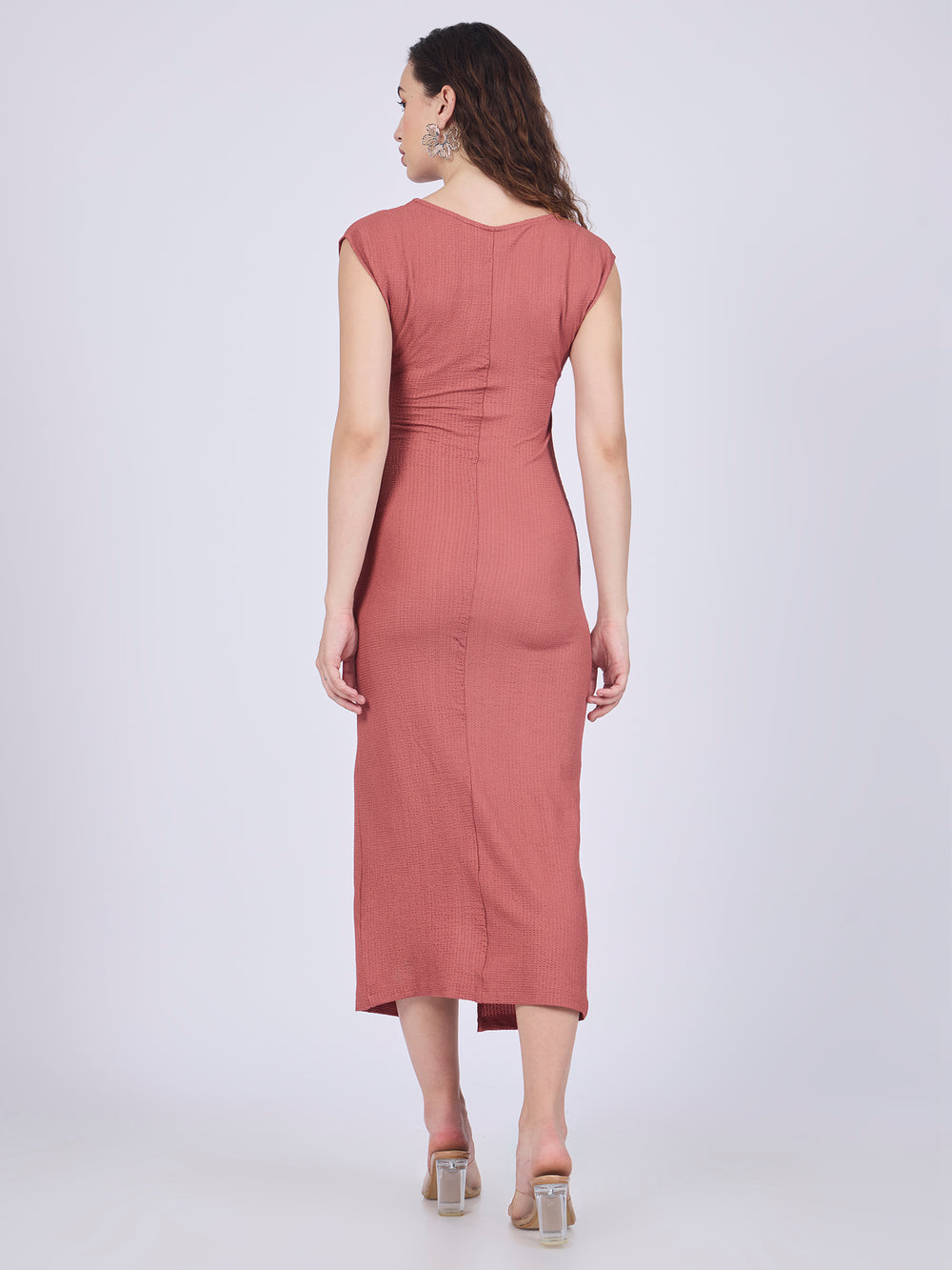 Peach Textured Knit Midi Dress