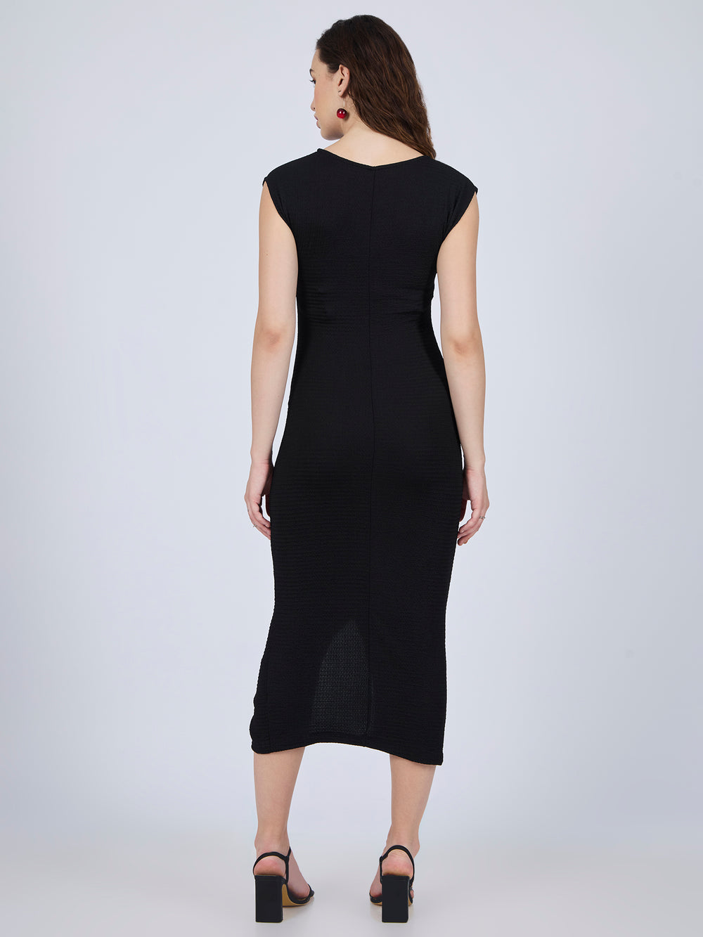 Black Textured Knit Midi Dress