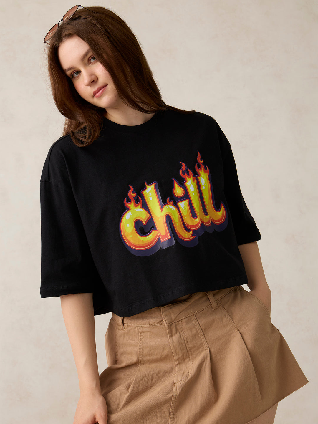 Looking for something that just works? The Black Graphic Cropped Boxy T-Shirt is the one. Black shades bring the vibe, and the shape sits in a cropped silhouette for max mix-and-match potential.