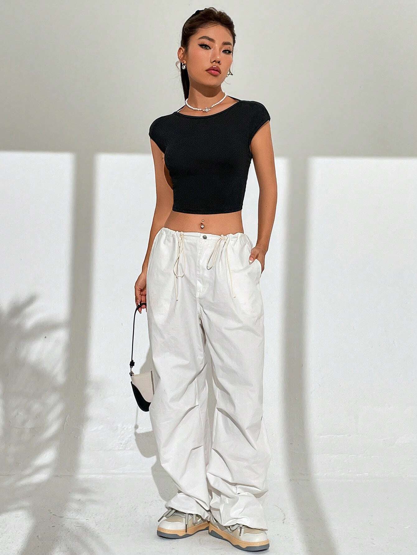 Nothing extra, everything just right. The Black Cap Sleeved Backless Top fits into every street wear plan with its no-stress vibe and wear-anywhere silhouette. For park walks, cafe runs, or just doing your thing,it’s a yes.