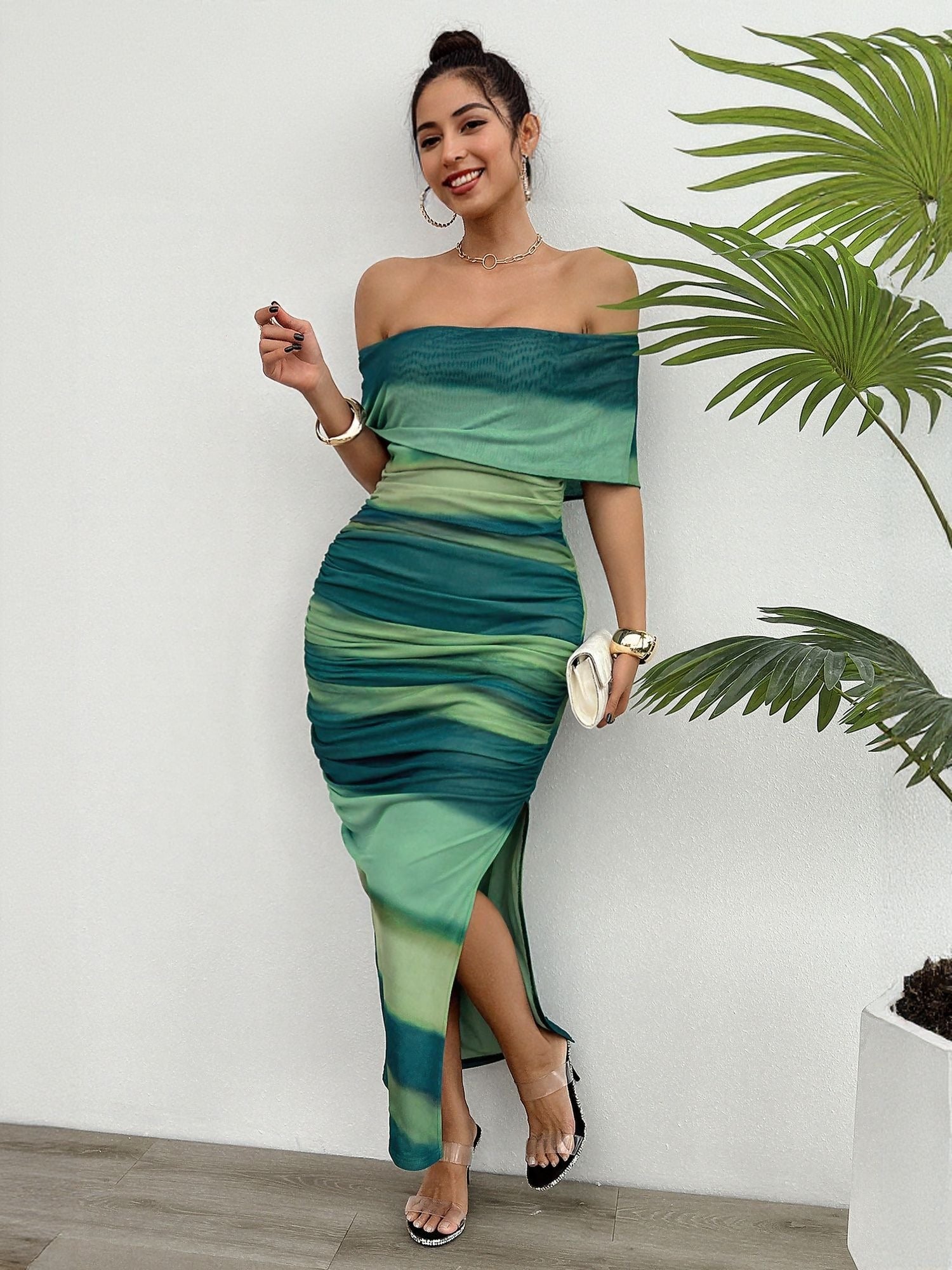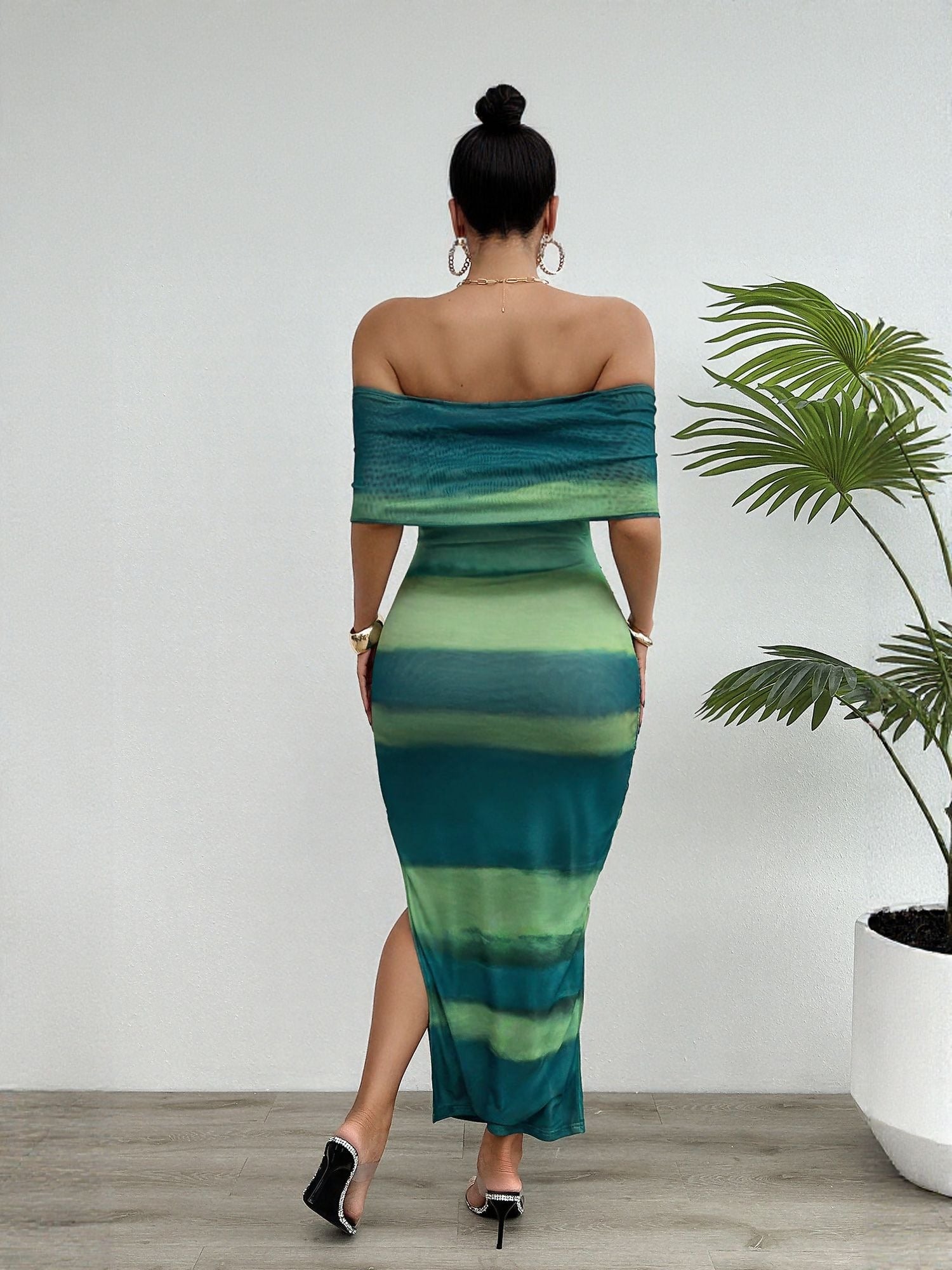Green Off Shoulder Fitted Maxi Dress