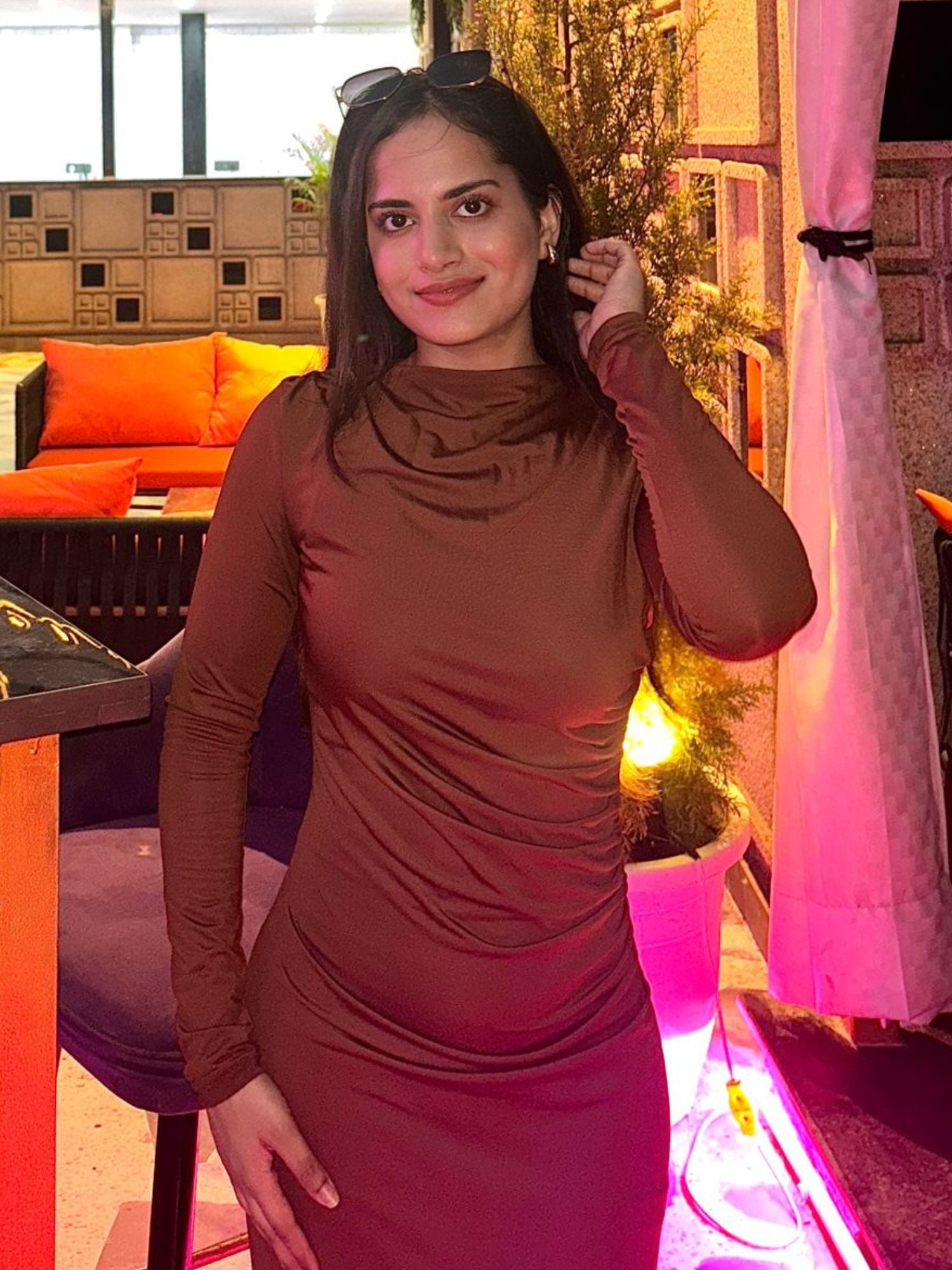 Solid Brown Side Ruched Dress