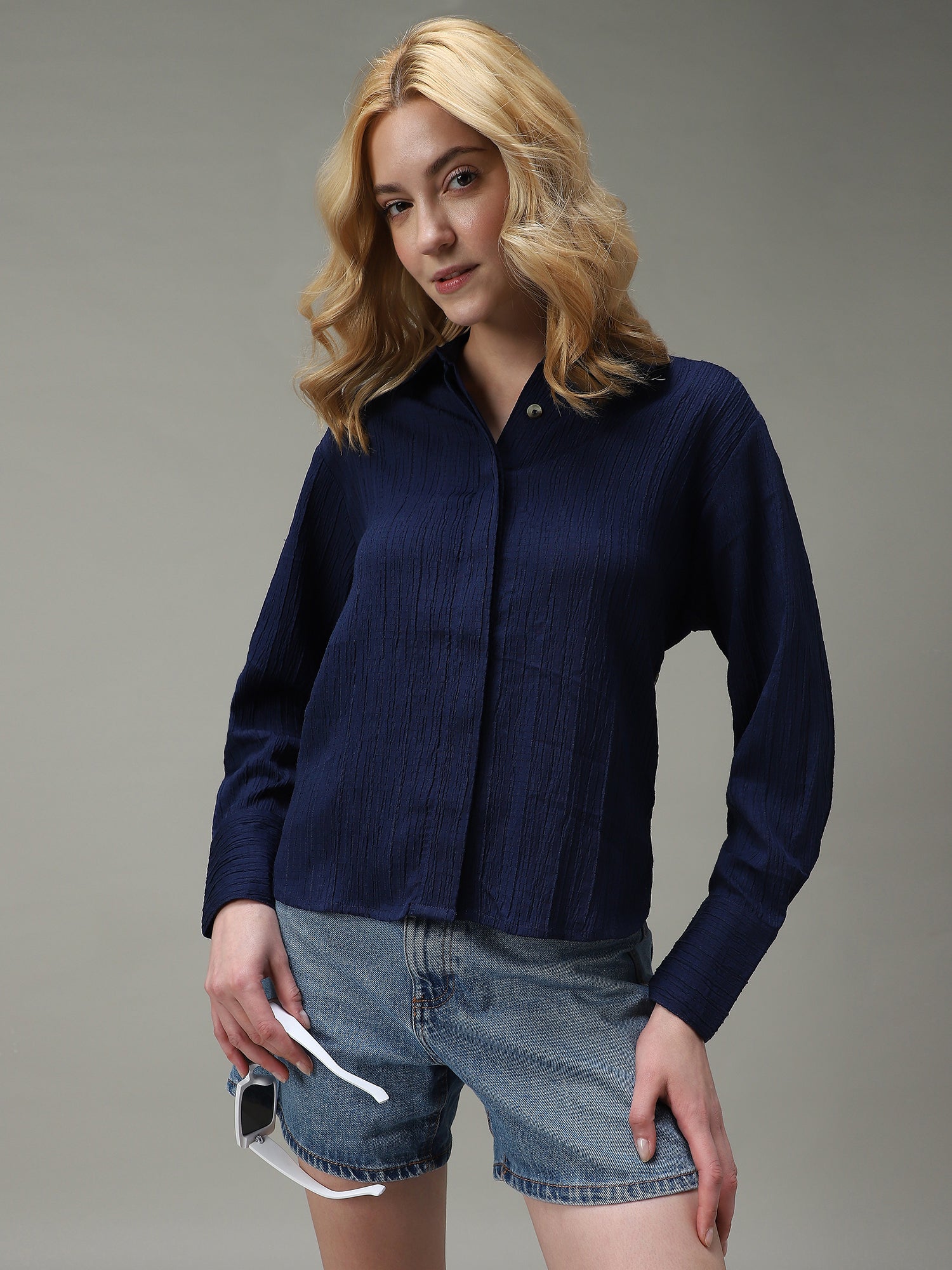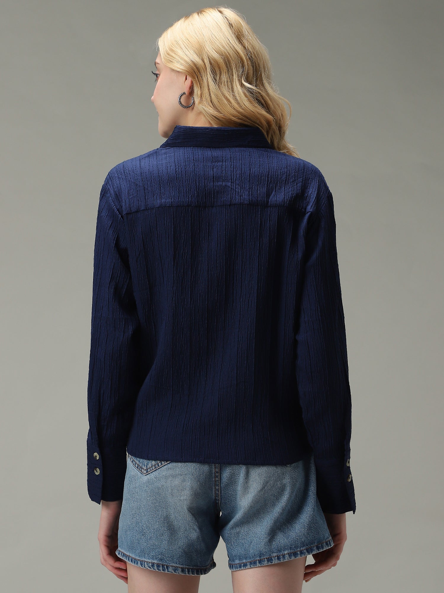 The Navy Blue Textured Crop Shirt is your anytime top, made for plans that change on the go. With a blue tone, this street wear fits every mood. Easy to throw on, harder to take off.