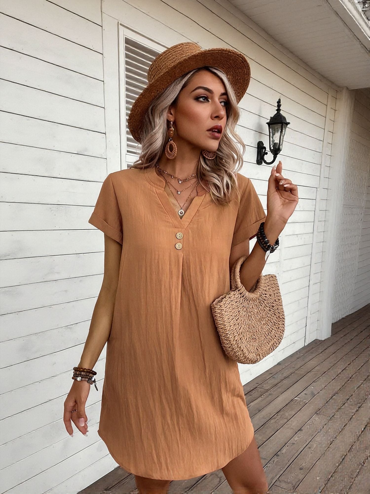Rust Short Sleeve Shift Dress is the wardrobe update you’ve been looking for. The relaxed style adds shape, while its this tone makes it perfect for going-out days. From day-to-night transitions to quick change plans, this mini dress gets it right every time. Keep your look effortless yet bold. Ideal for parties, catch-ups, or quick weekend plans.