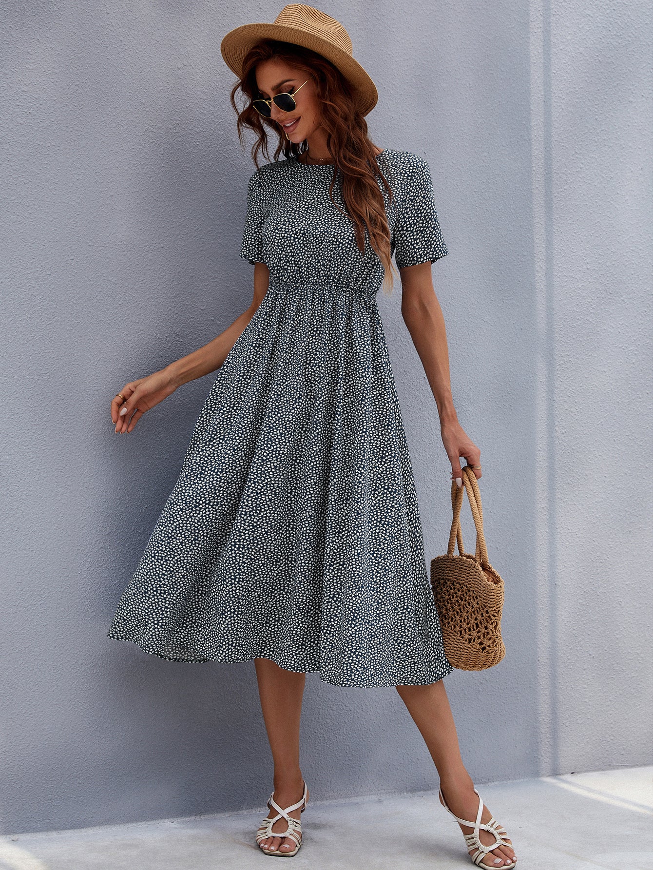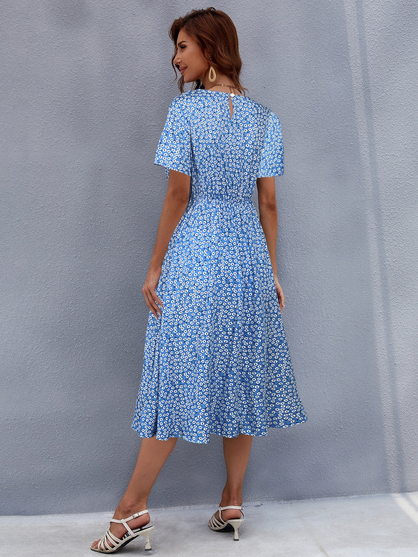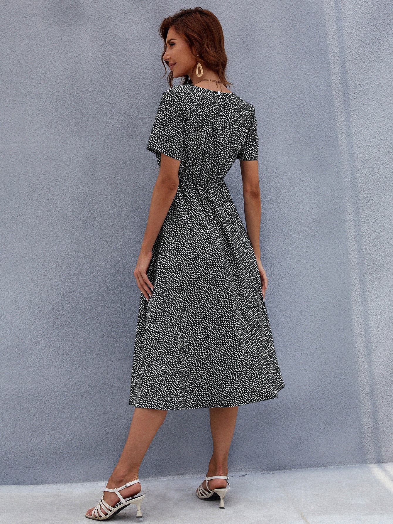White Ditsy Print Waist Seam Fit And Flare Dress