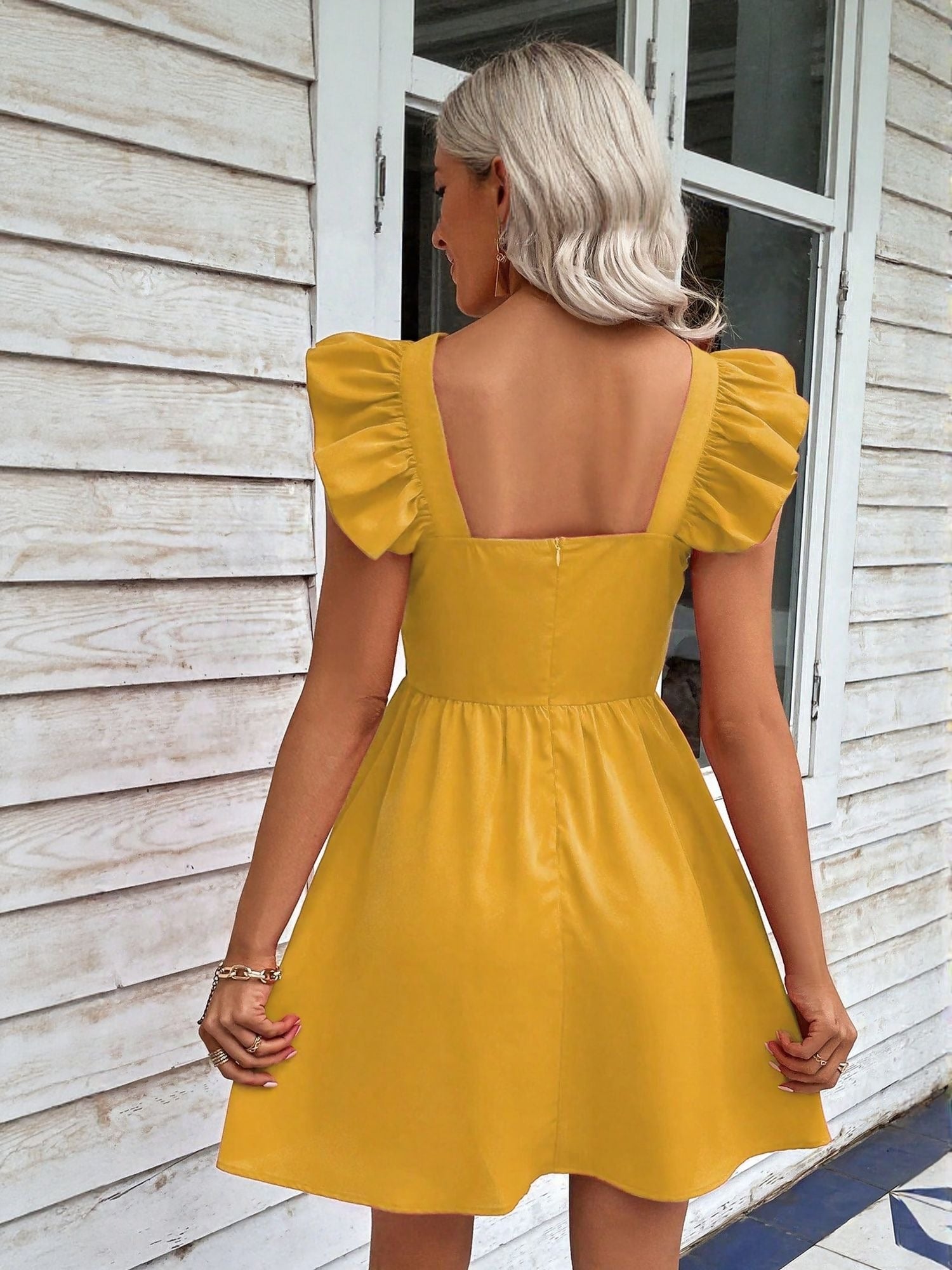 Heading out? Mustard Fit And Flare Dress With Ruffle is ready. With a fit & flare shape and wearable this shade, this vacation mini dress makes styling easy. Designed for vacation moments, it’s your quick outfit fix that feels polished and pulled together without overthinking it.