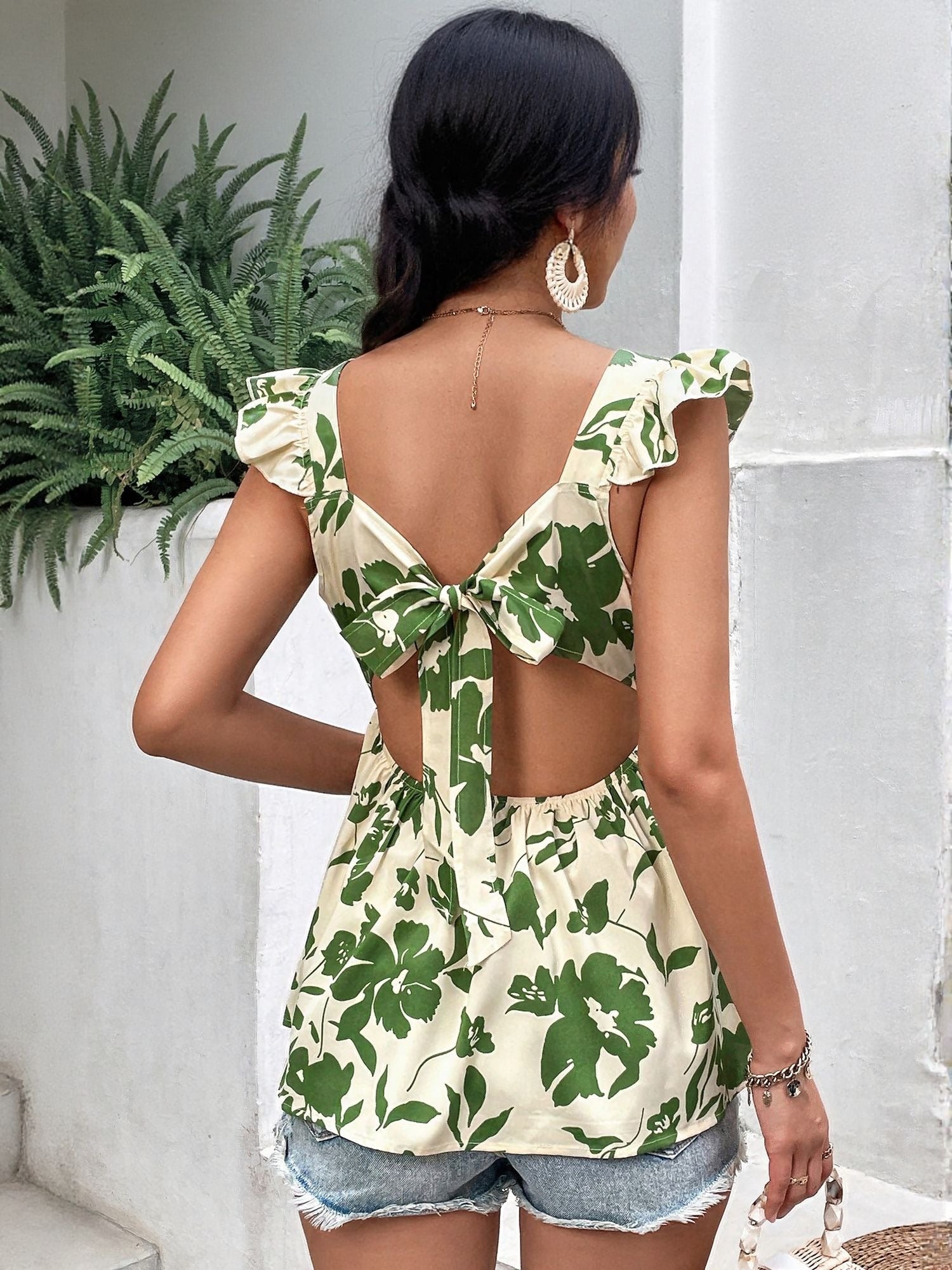 The Green Ruffle Sleeve Top With Smocking Detail isn’t just a vacay wear, it's your fashion fallback. Green brightens up your closet, and the classic cut means it pairs with almost everything.