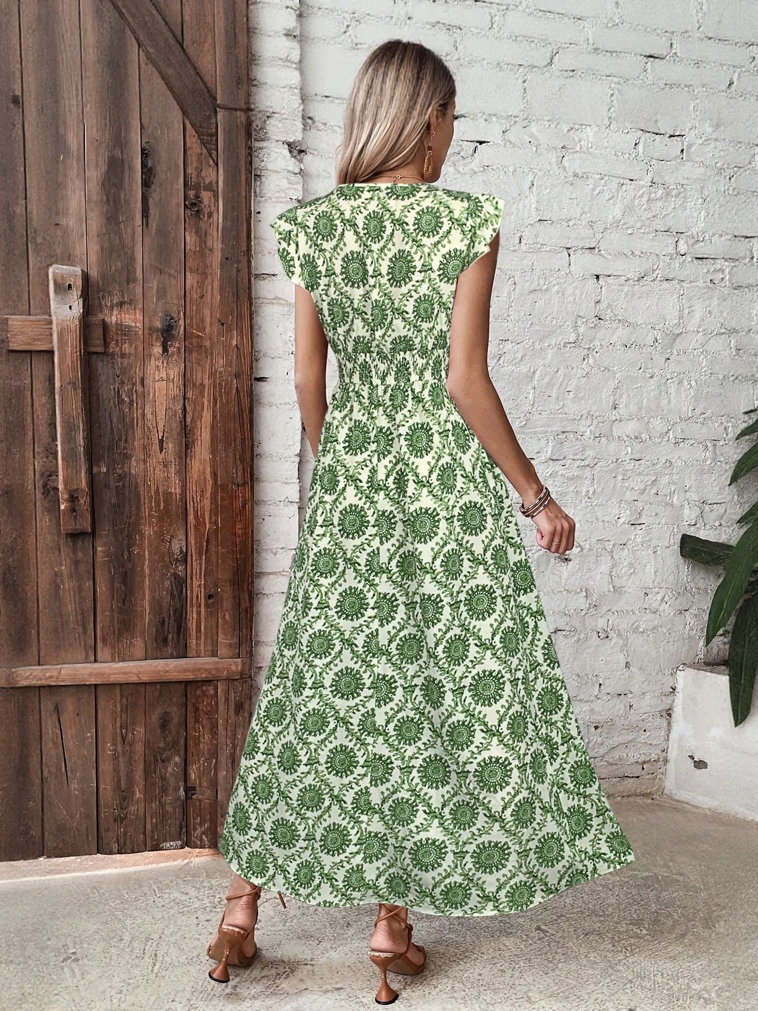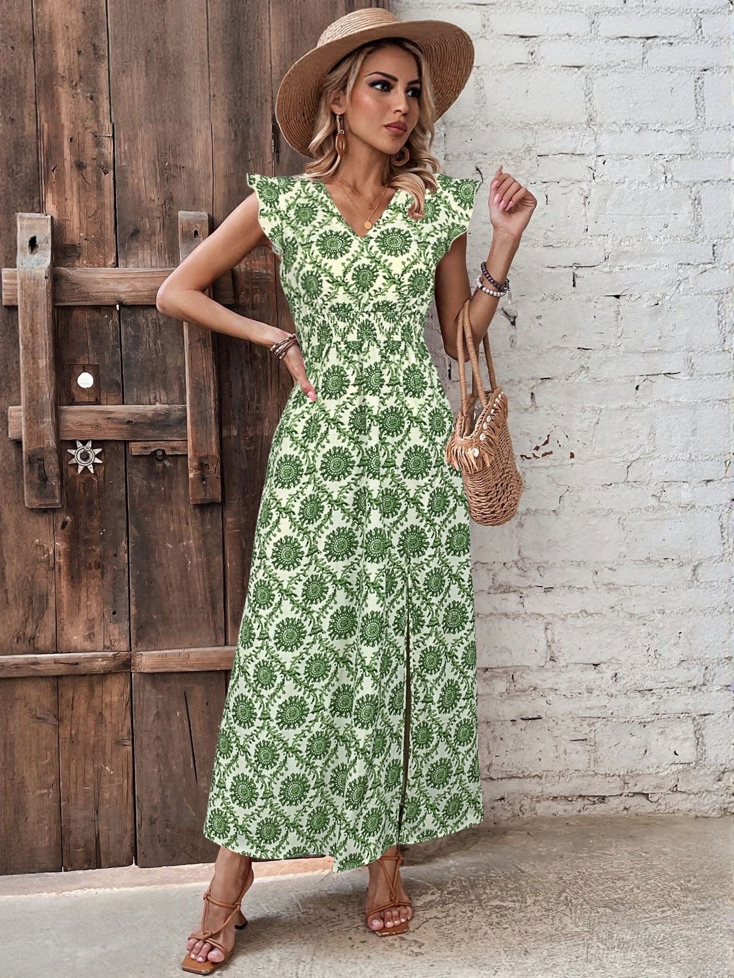 Green Printed Maxi Dress With Slit