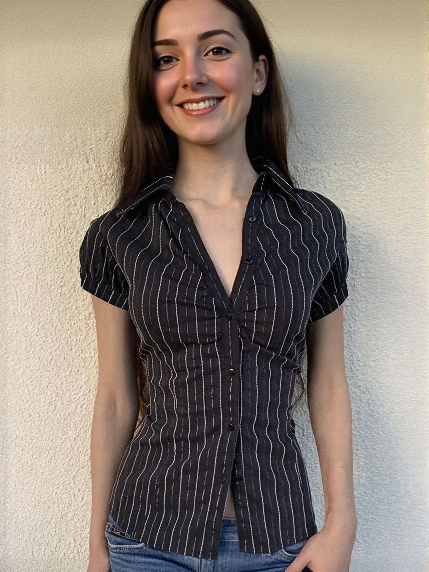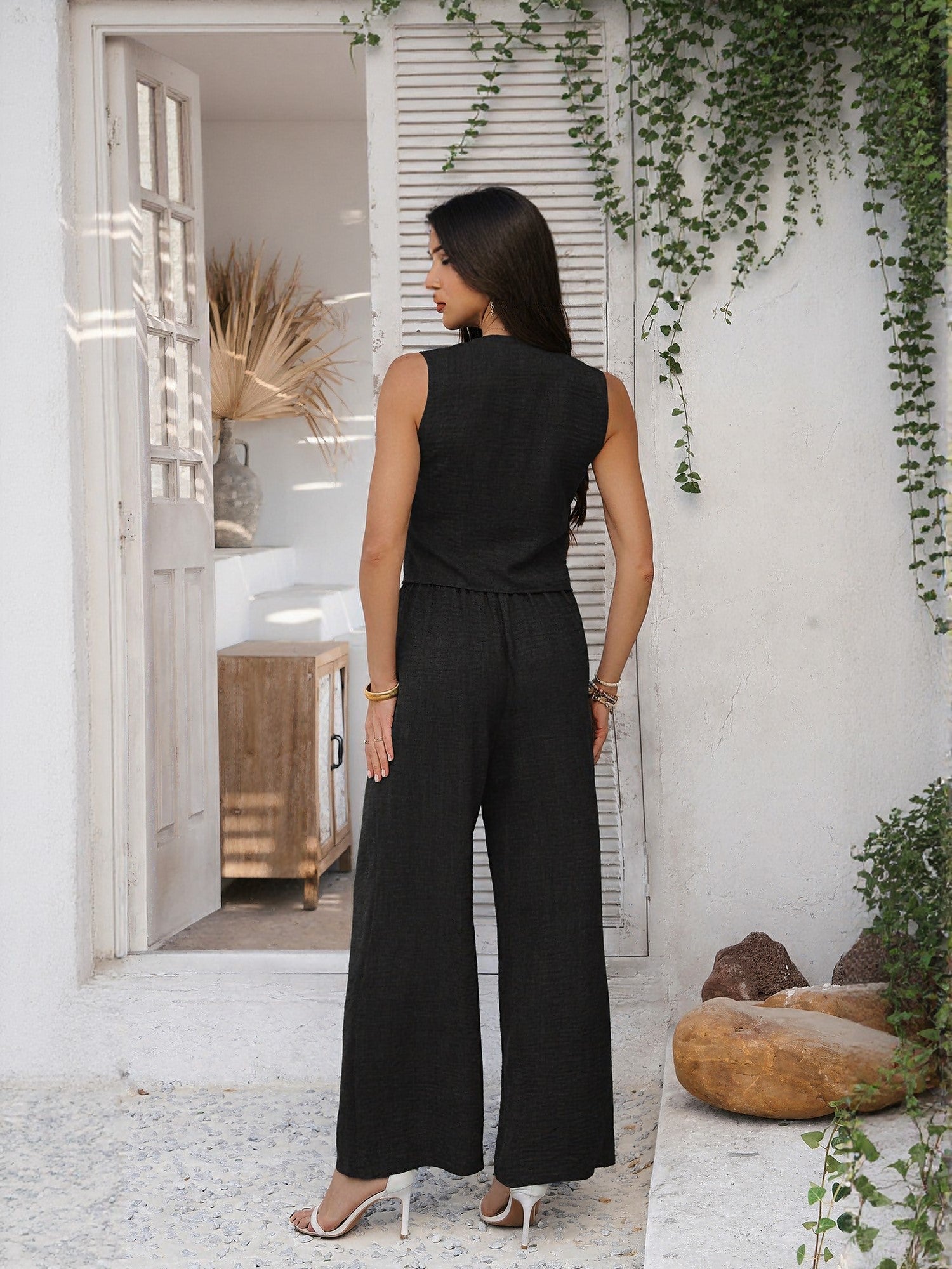 The Black Buttoned Vest Blouse is built for real plans and real movement. Bold in black, this vacay wear transitions easily from daywear to after-dark fits. Finished with attention to ease and flow.