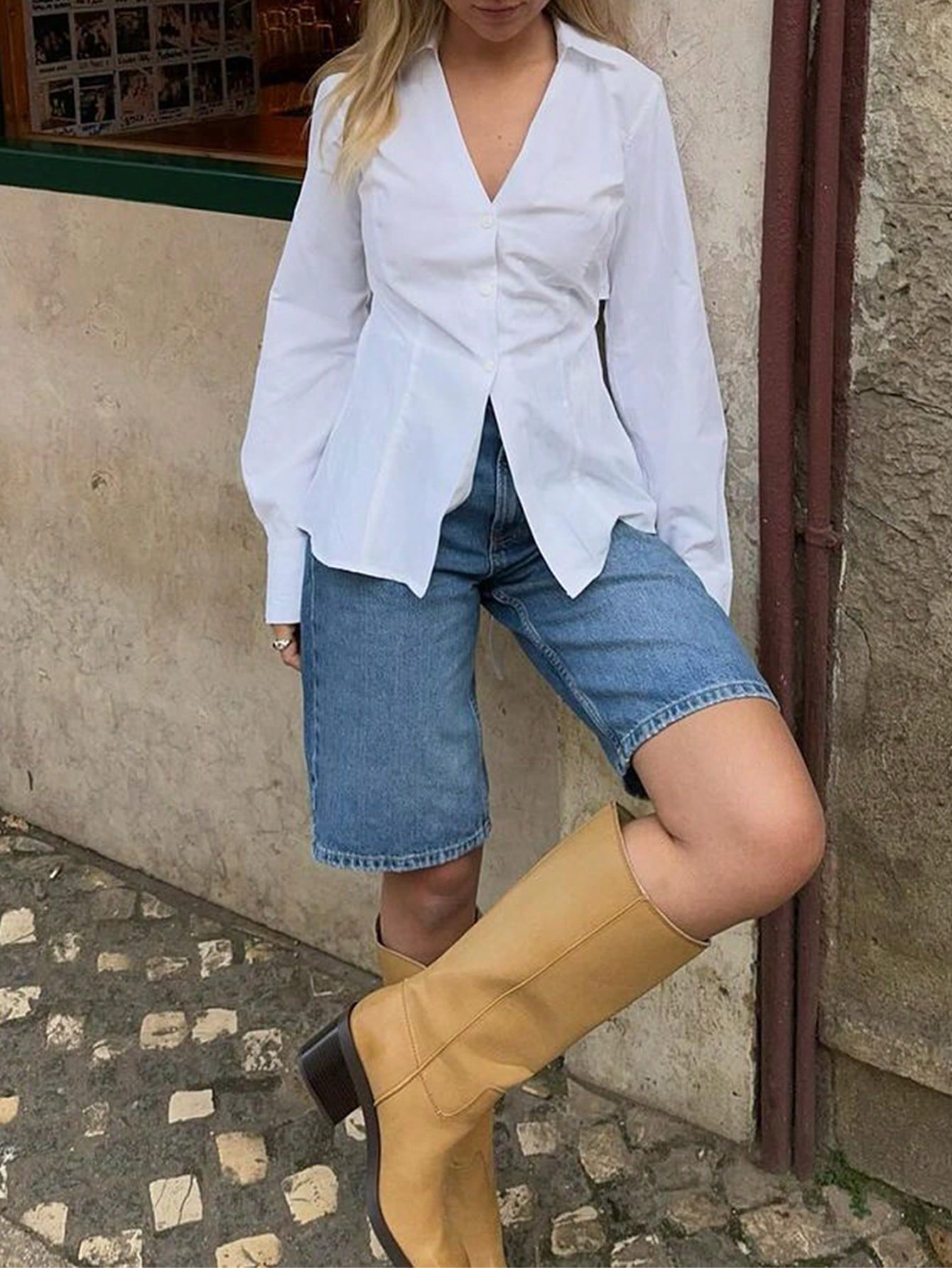 White V Neck Cotton Shirt