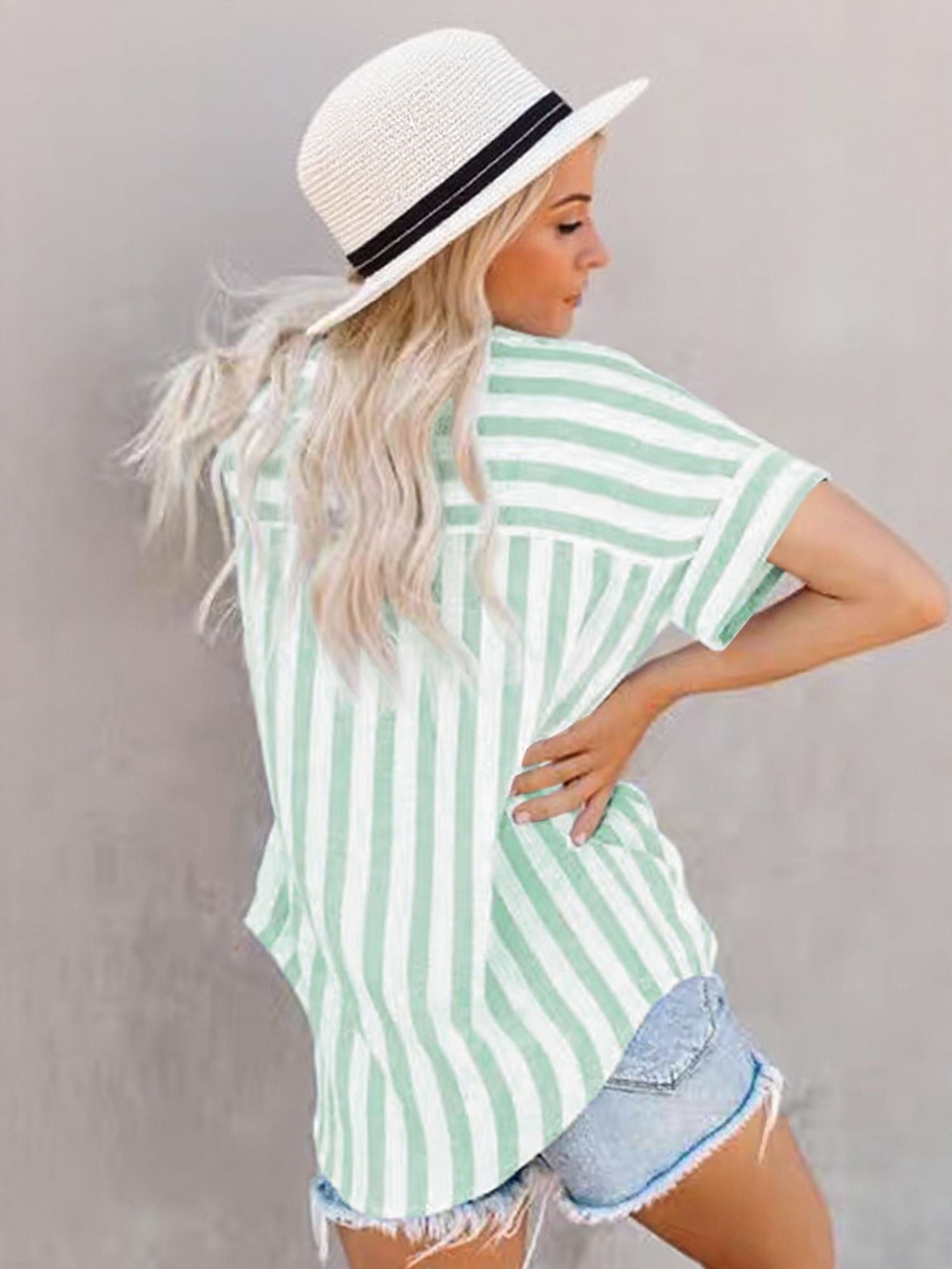 Looking for something that just works? The Sea Green Oversized Striped Shirt is the one. Green shades bring the vibe, and the shape sits in a oversized silhouette for max mix-and-match potential.