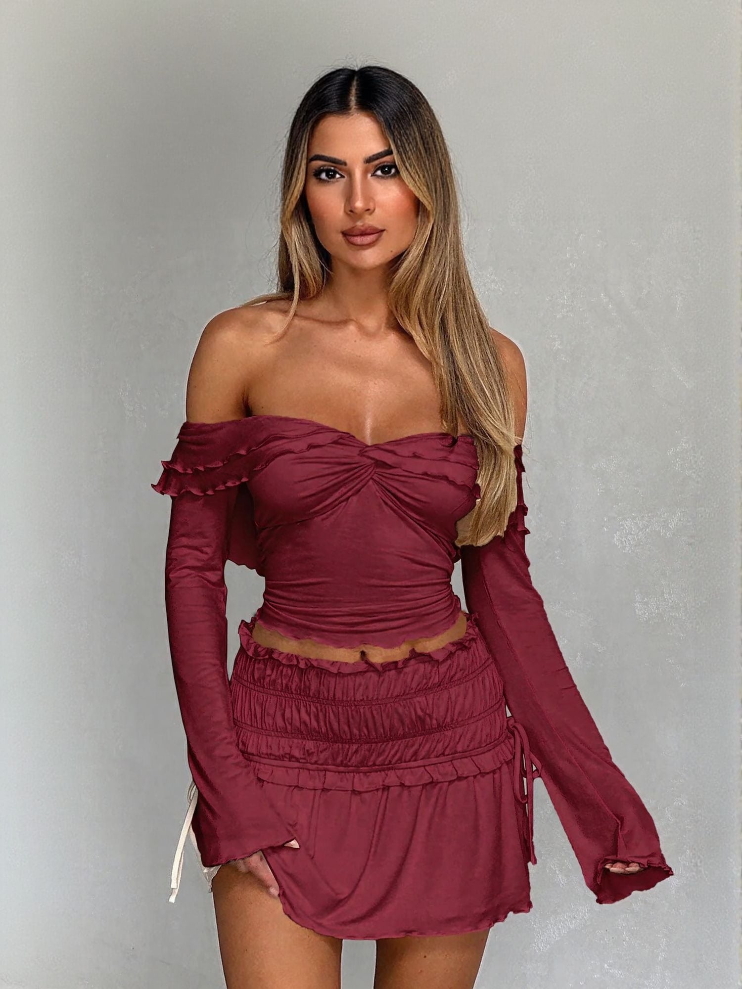 Nothing extra, everything just right. The Wine Off Shoulder Knit Top With Front Twist Detail fits into every party wear plan with its no-stress vibe and wear-anywhere silhouette. For park walks, cafe runs, or just doing your thing,it’s a yes.