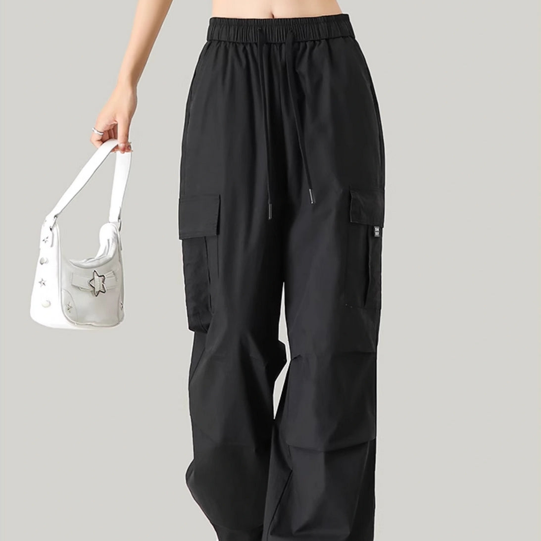 Black Parachute Cargo Pocket Trousers