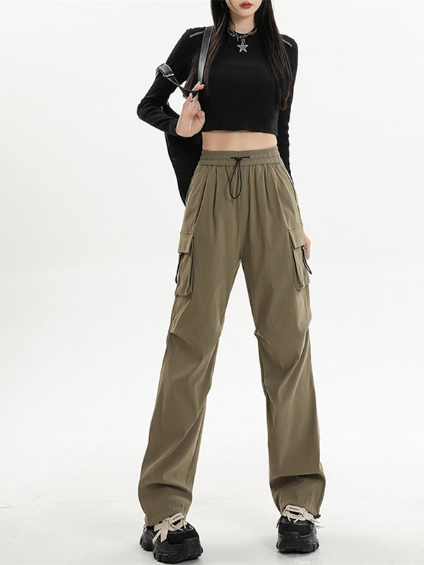 Khaki Elasticated Waistband Parachute Trousers