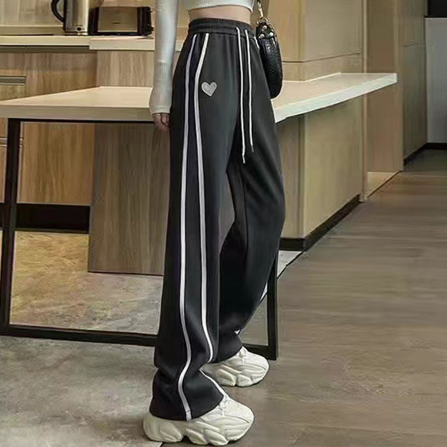 Solid Charcoal Contrast Stripped Wide Leg Sweatpants
