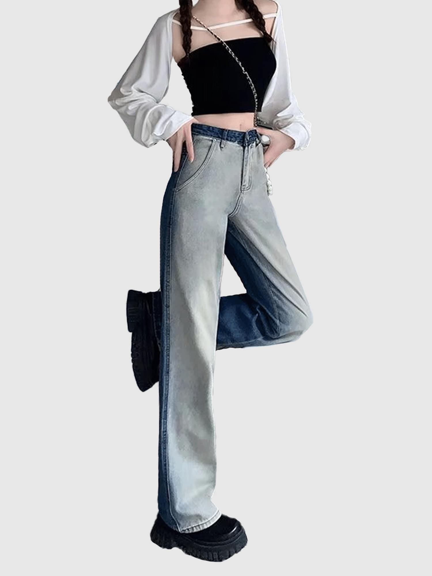 Classic dual-tone washed straight denim for women. Crafted for comfort and style, offering a perfect fit for casual or street wear. Versatile and trendy, these jeans are a must-have addition to your wardrobe. With a sleek, modern design, they pair effortlessly with any outfit, ensuring all-day comfort and a flattering silhouette. Ideal for both laid-back days and casual outings.