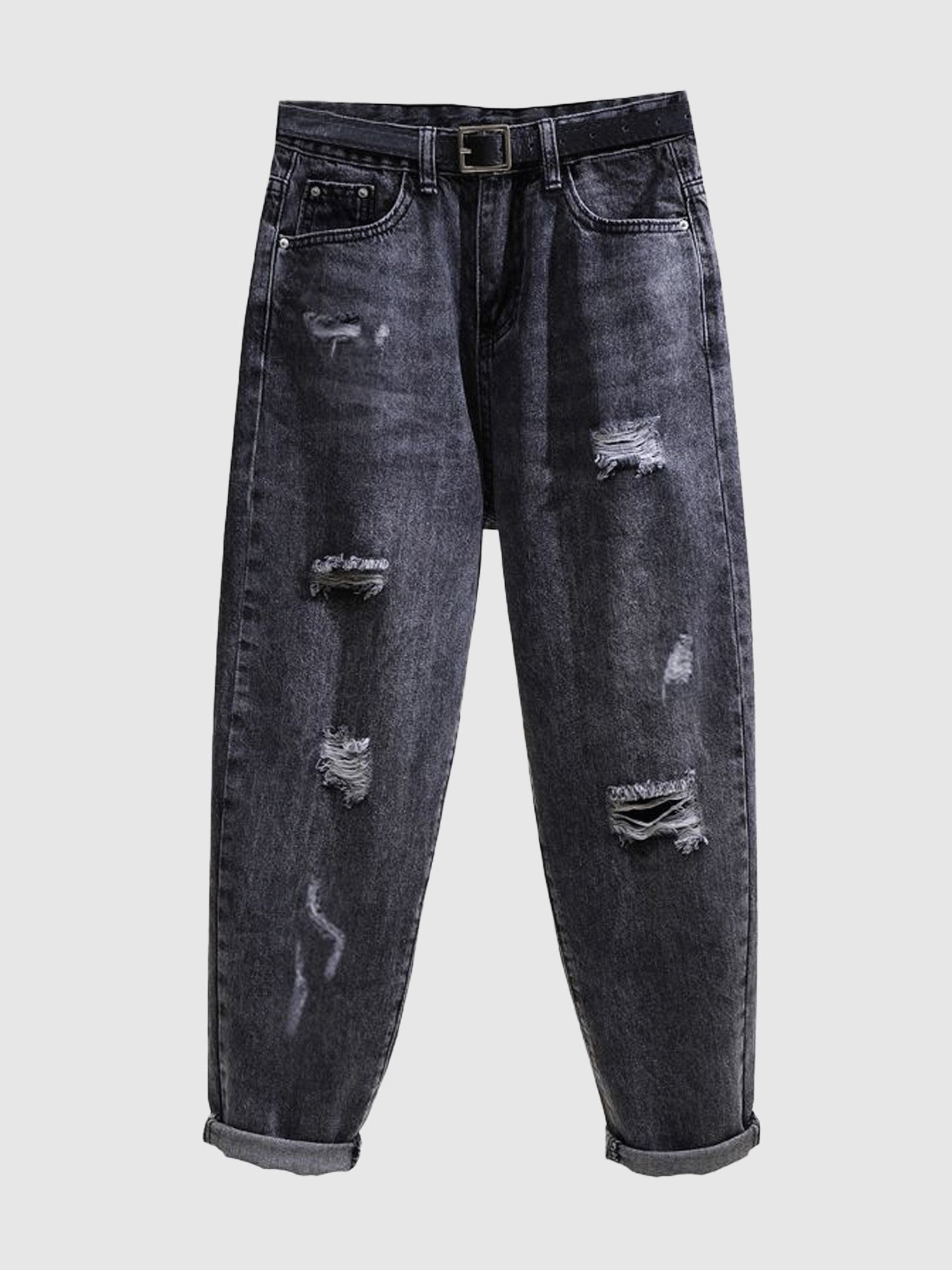 Comfortable and stylish, distressed mom denim jeans are a perfect blend of casual and street wear. With a relaxed fit and trendy distressed details, these jeans offer a laid-back yet fashionable look. Ideal for everyday wear, they provide both comfort and style, making them a wardrobe essential for any woman looking for versatile, go-to jeans.