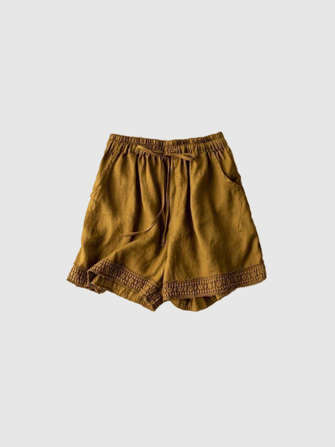 Comfort meets style with brown lace-detailed shorts, perfect for casual outings or vacay adventures. Featuring delicate lace accents, these shorts add a touch of femininity to any look. Crafted for comfort and effortless wear, they锟斤拷锟絩e an essential piece for warm weather days. Whether paired with a tee or tank, these shorts offer versatility and a relaxed fit for women who enjoy both style and comfort.