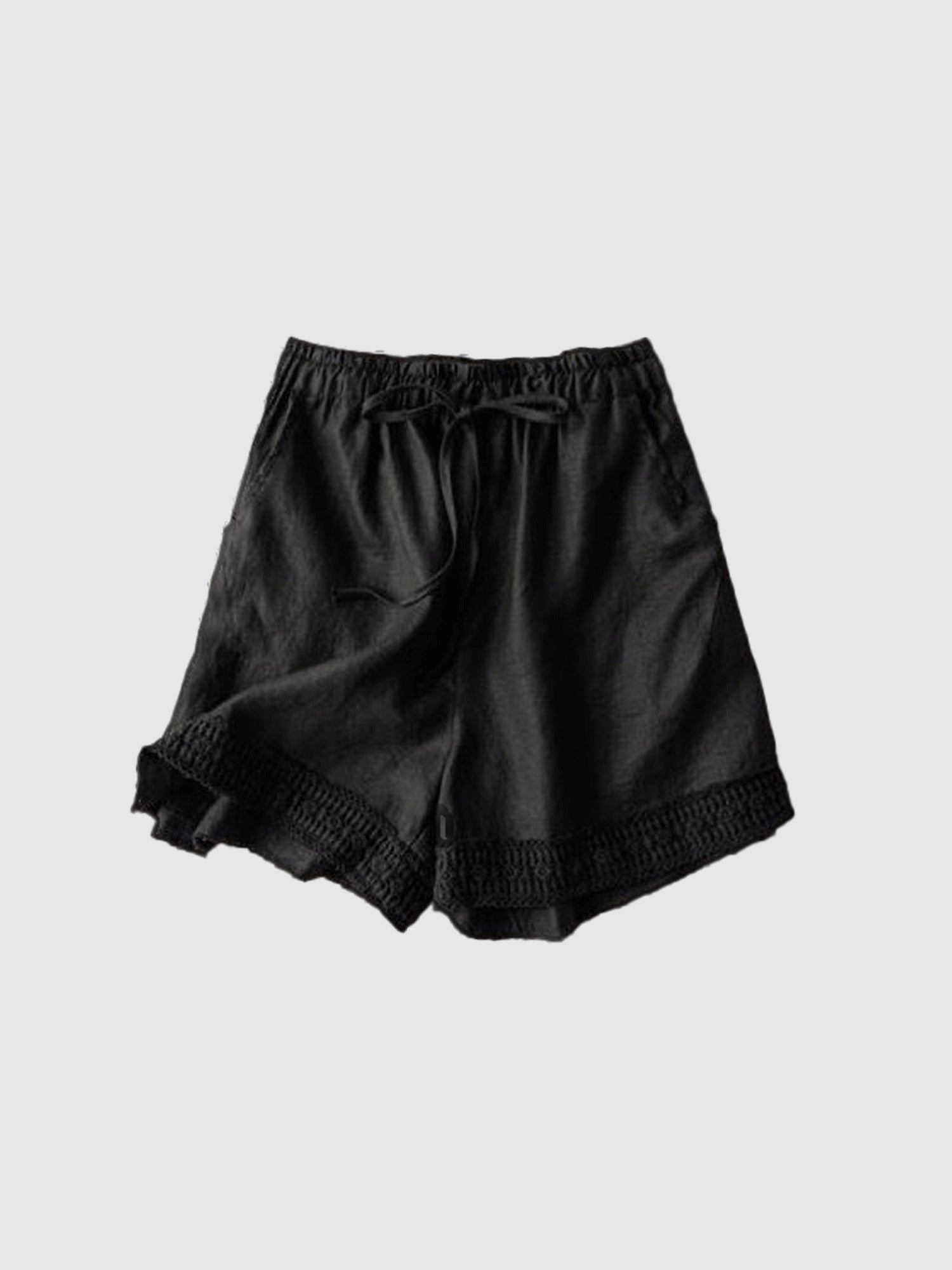 Black Lace Detailed Shorts combine comfort and style for a chic, casual look. Featuring delicate lace detailing, these shorts are perfect for vacations or everyday wear. Designed for women who love effortless fashion, they offer a flattering fit and versatile wearability. Pair them with a simple top or swimwear for a relaxed yet trendy outfit. Ideal for sunny days or laid-back outings.