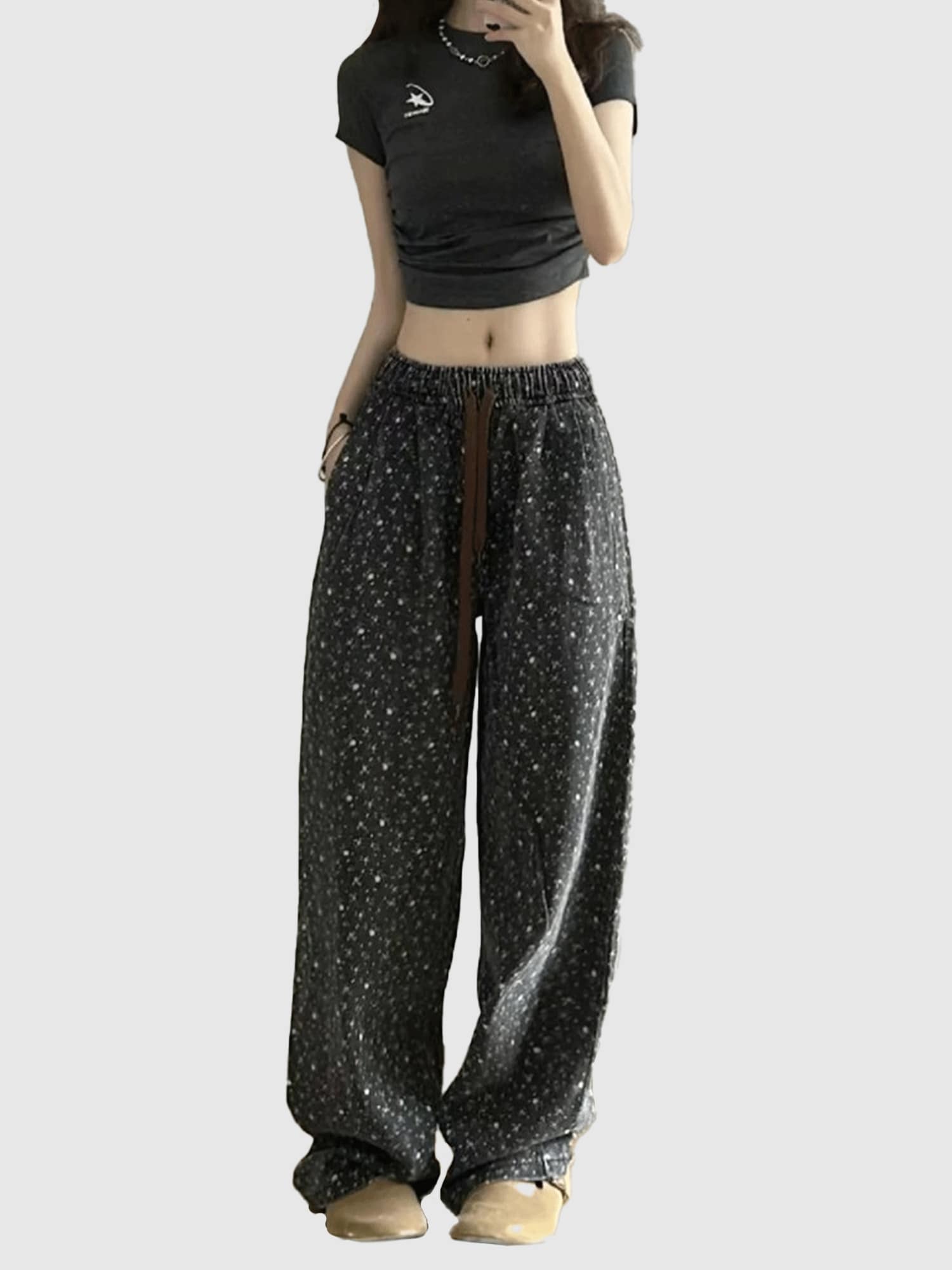 Stay comfy and stylish with the Printed Baggy Drawstring Denim. Designed for casual, street-inspired looks, this relaxed-fit denim features a drawstring waist for a customizable fit. Perfect for women who embrace effortless style, its trendy print adds a unique flair to any casual outfit. Versatile enough for day-to-day wear or a laid-back weekend look.