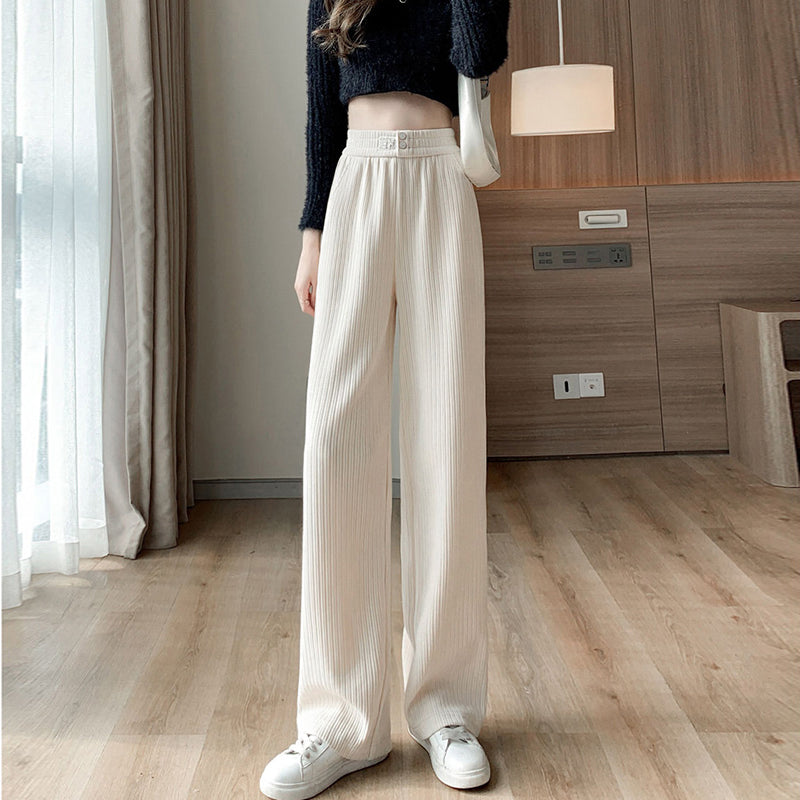 Beige Corduroy Wide Leg Pants offer a relaxed fit and stylish streetwear vibe. Perfect for casual outings, these trousers are a must-have in any wardrobe. With a versatile design, they pair effortlessly with any top, making them ideal for everyday wear. Ideal for those who love Korean and street style fashion, these pants provide comfort and trendiness in one.