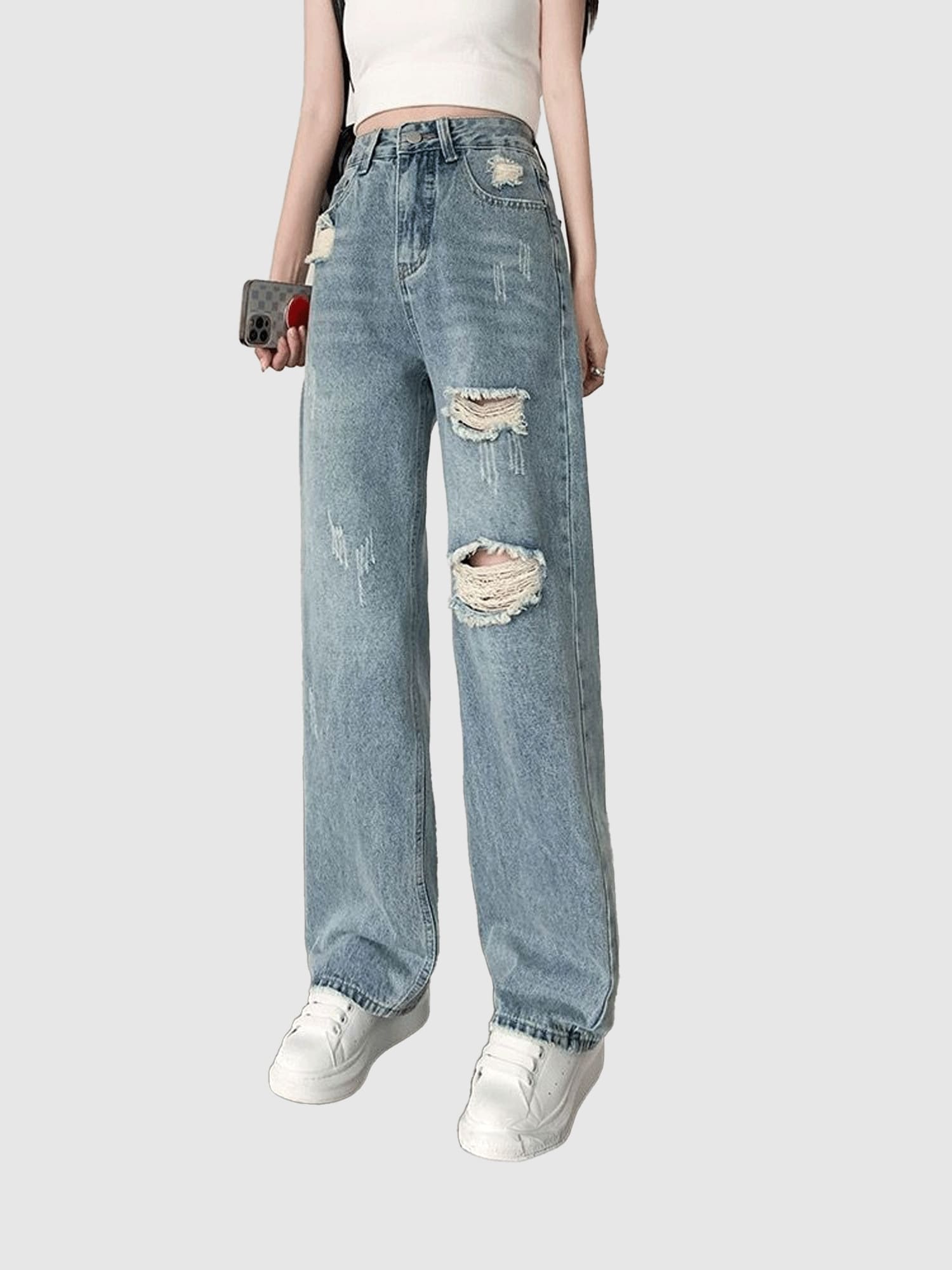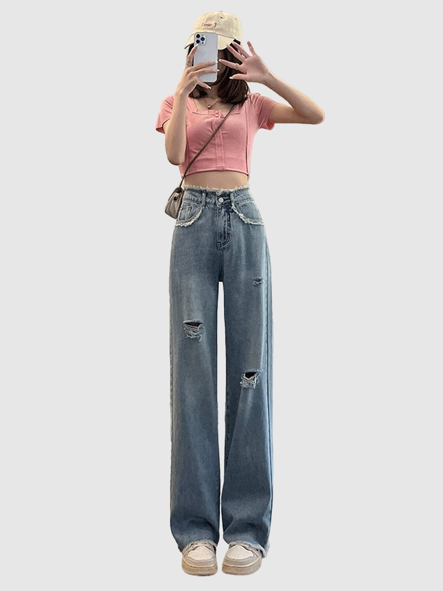 Wide-leg denim with a drawstring waistband offers comfort and style. Perfect for casual or streetwear looks, these jeans provide a relaxed fit and a modern vibe. Ideal for pairing with any top, they are a versatile addition to any wardrobe.