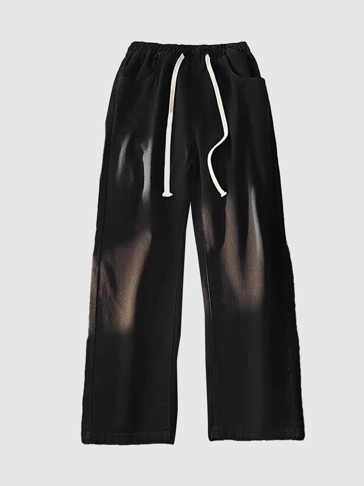 Wide-leg denim with a drawstring waistband offers comfort and style. Perfect for casual or streetwear looks, these jeans provide a relaxed fit and a modern vibe. Ideal for pairing with any top, they锟斤拷锟絩e a versatile addition to any wardrobe.
