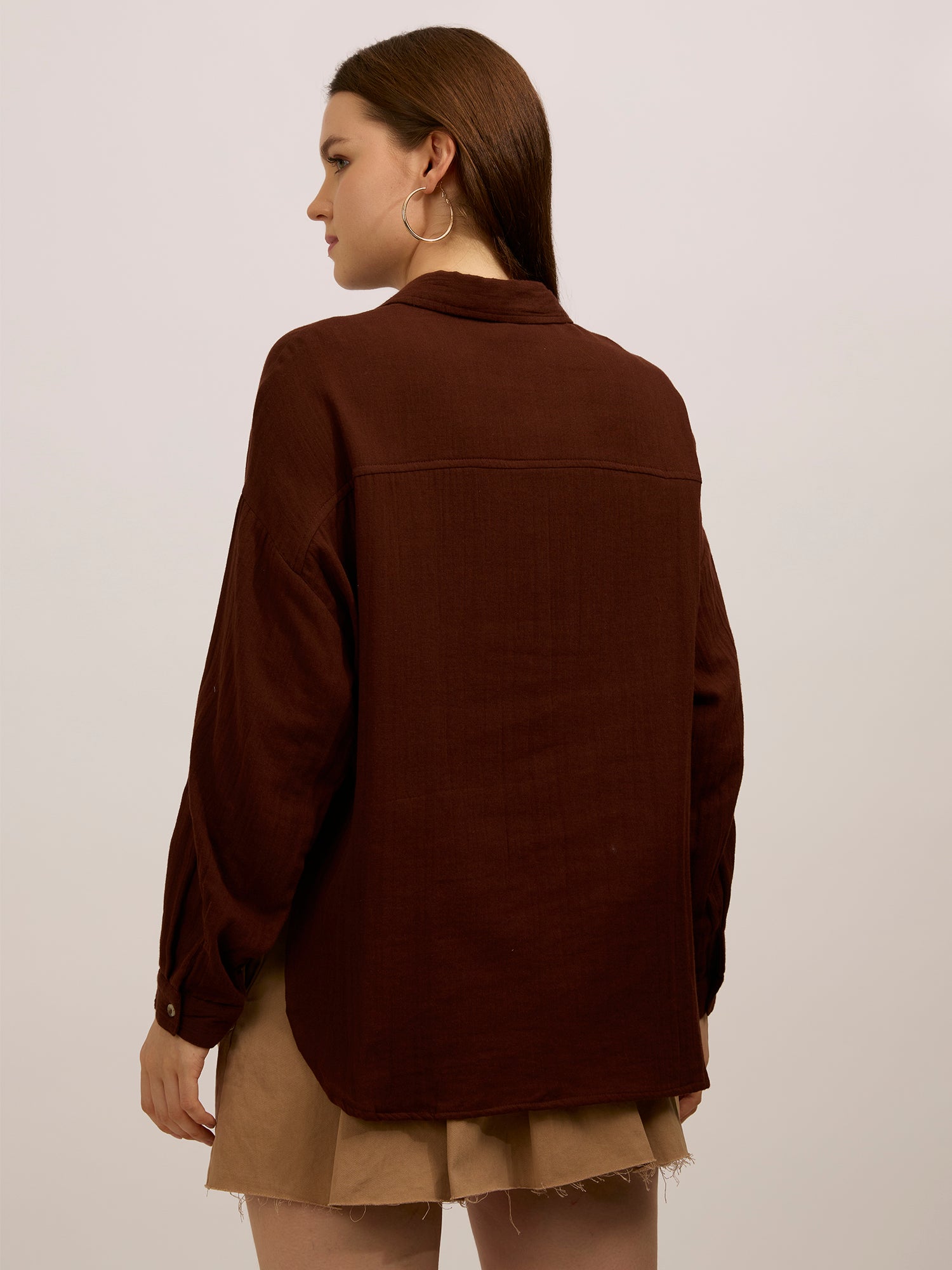 Slip into the Brown Double Pocket Oversized Boxy Shirt for a laid-back day that still looks styled. Whether you're heading out or staying in, this casual wear is built for that Gen Z mix of comfort and edge. The brown color makes it pop, and the oversized fit means it feels as good as it looks.