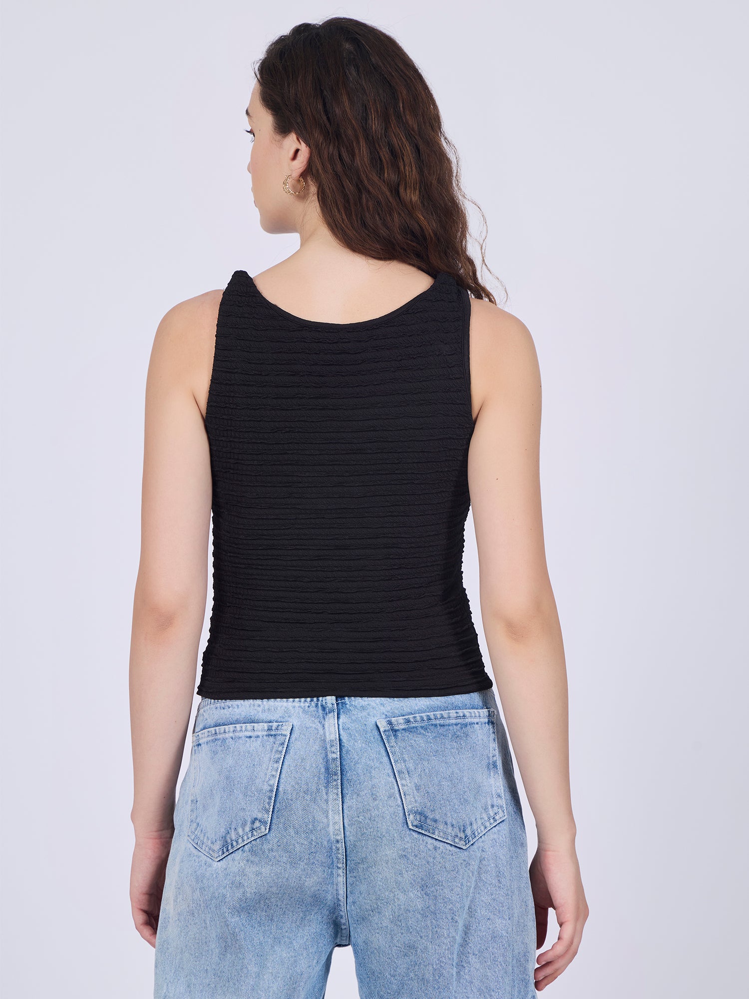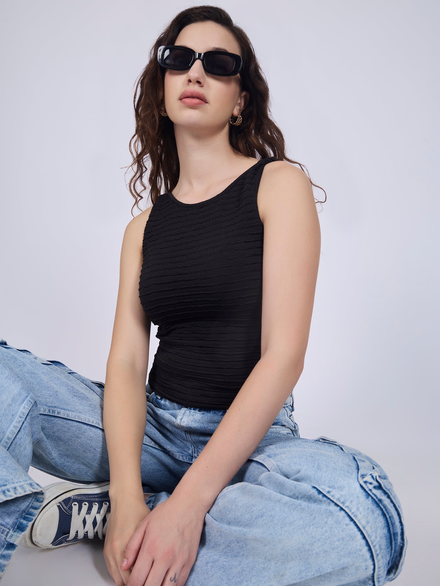 Slip into the Black Textured Knit Halter Neck Tank Top for a laid-back day that still looks styled. Whether you're heading out or staying in, this casual wear is built for that Gen Z mix of comfort and edge. The black color makes it pop, and the relaxed fit means it feels as good as it looks.