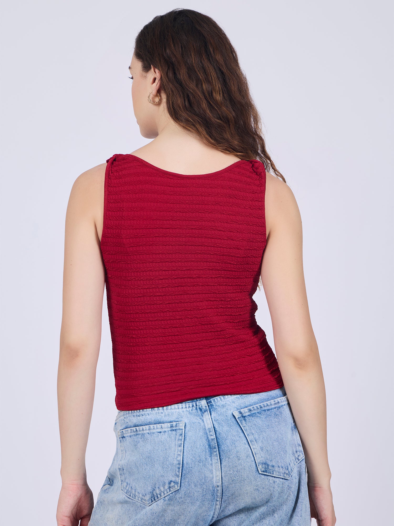 The Maroon Textured Knit Halter Neck Tank Top is your anytime top, made for plans that change on the go. this casual wear fits every mood. Easy to throw on, harder to take off.
