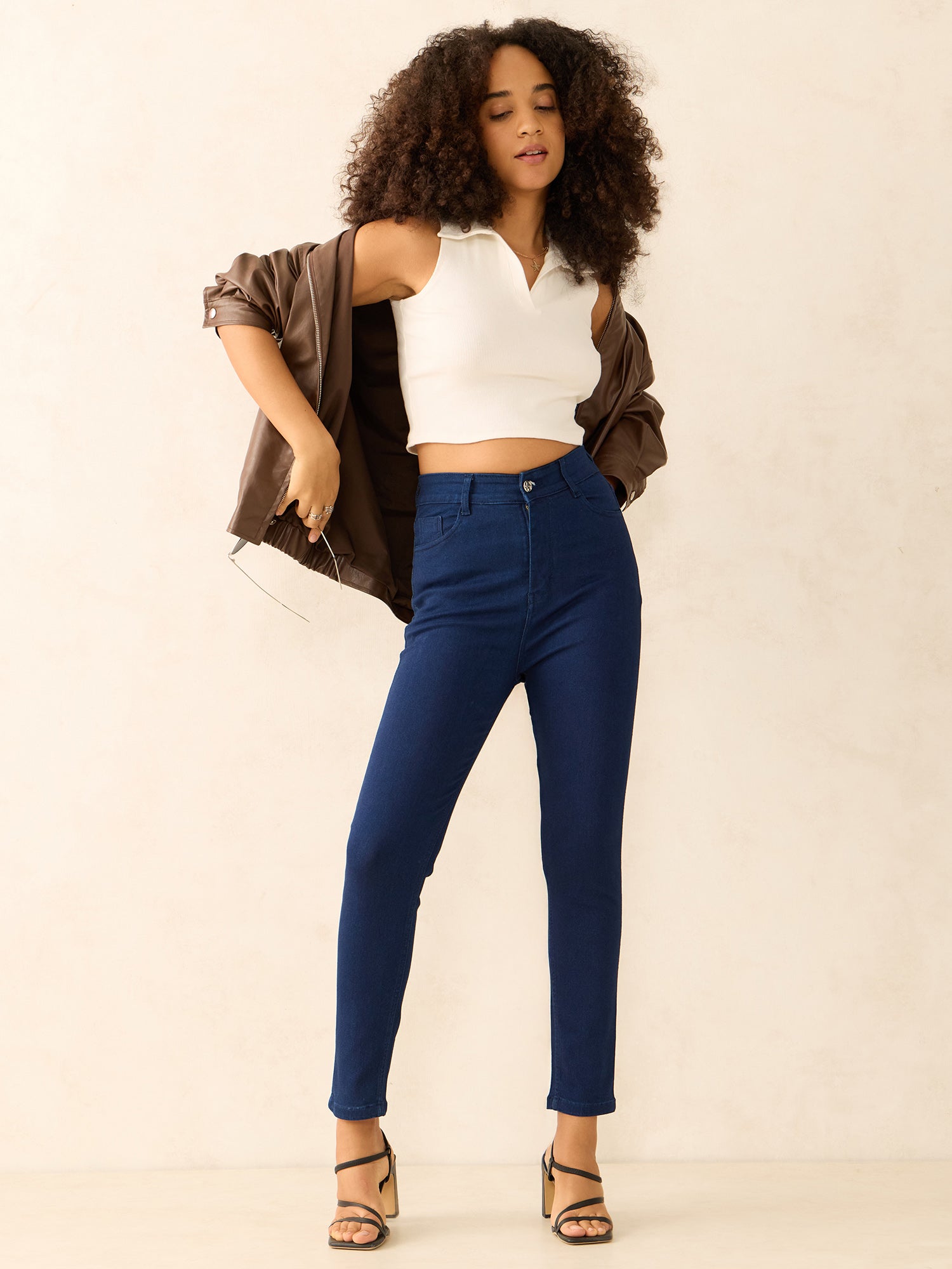 Navy Blue Pencil Slim Fit High-Rise Jeans
