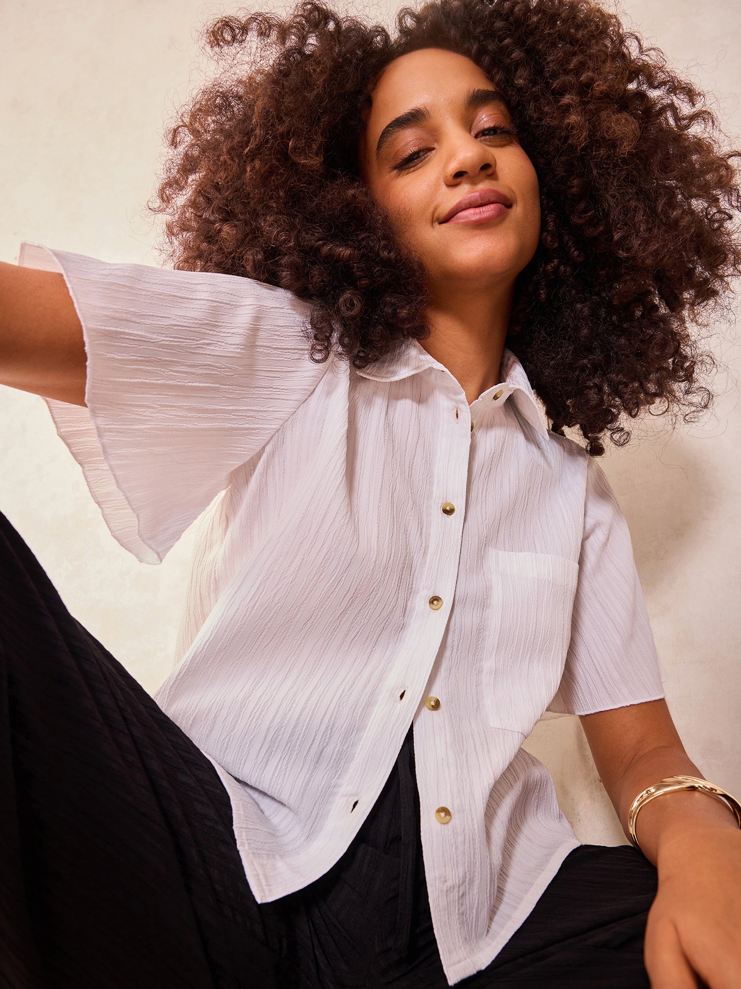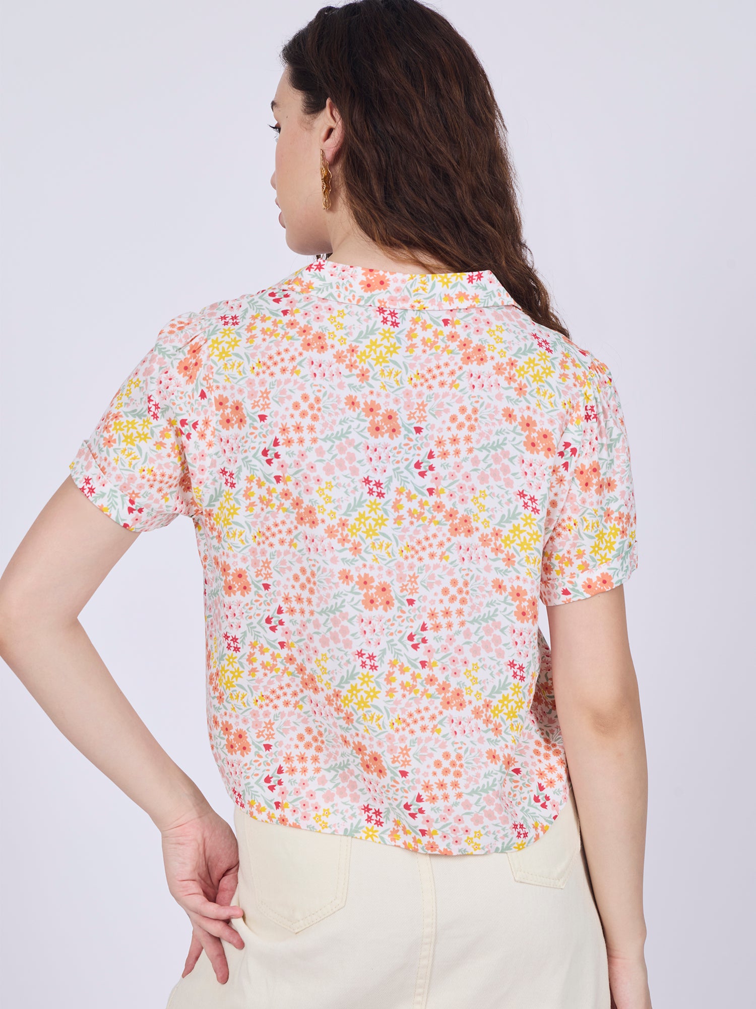 Own your outing in the White Notch Collar Cropped Shirt. White gives it attitude, and the vacay wear format keeps it real and wearable. From casual brunches to late-night chill, this is how Gen Z does going out.