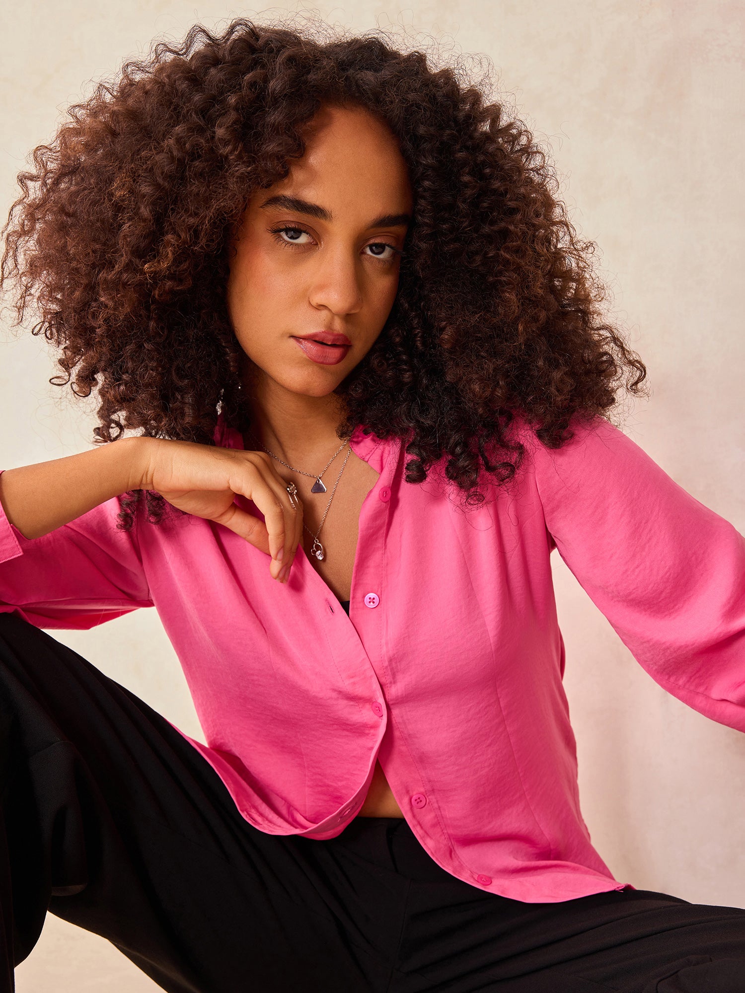 Pink Relaxed Fit Satin Shirt