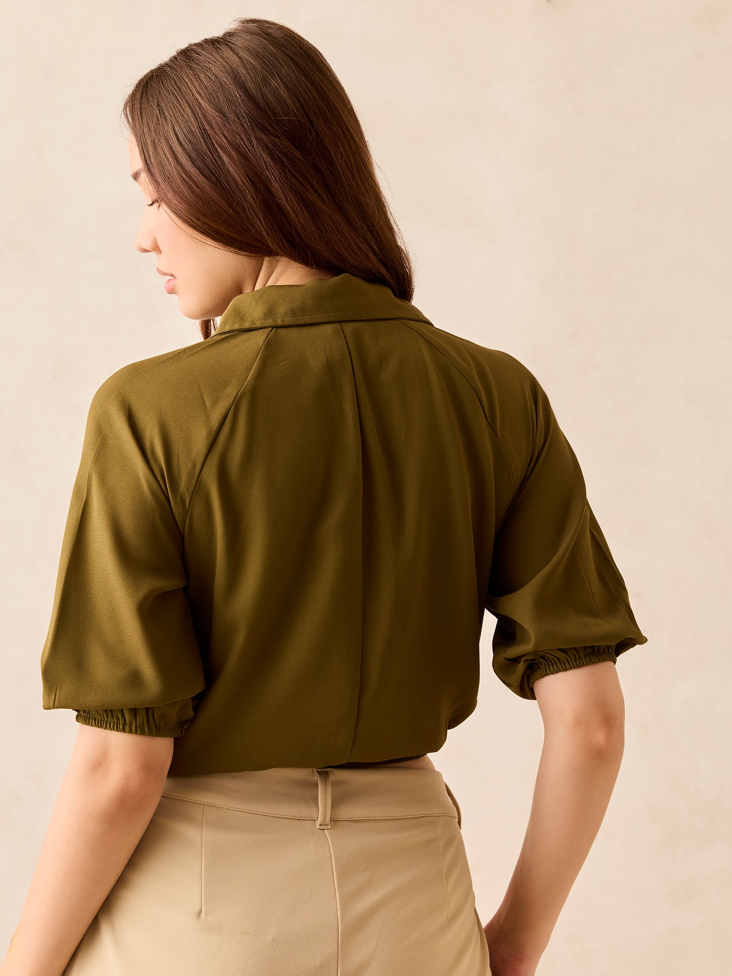 Looking for something that just works? The Olive Cropped Utility Shirt is the one. and the shape sits in a cropped silhouette for max mix-and-match potential.