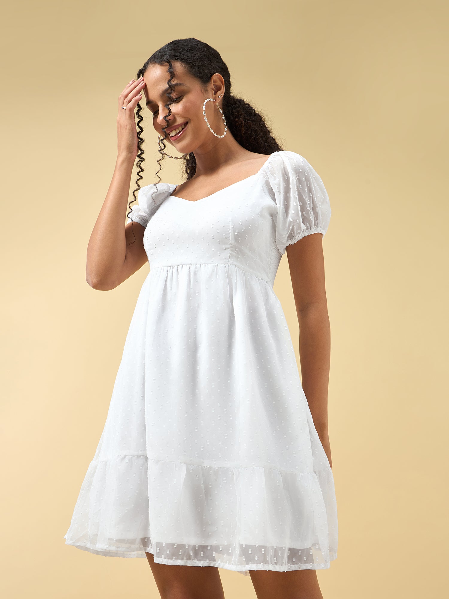 White Puff Sleeved Dress