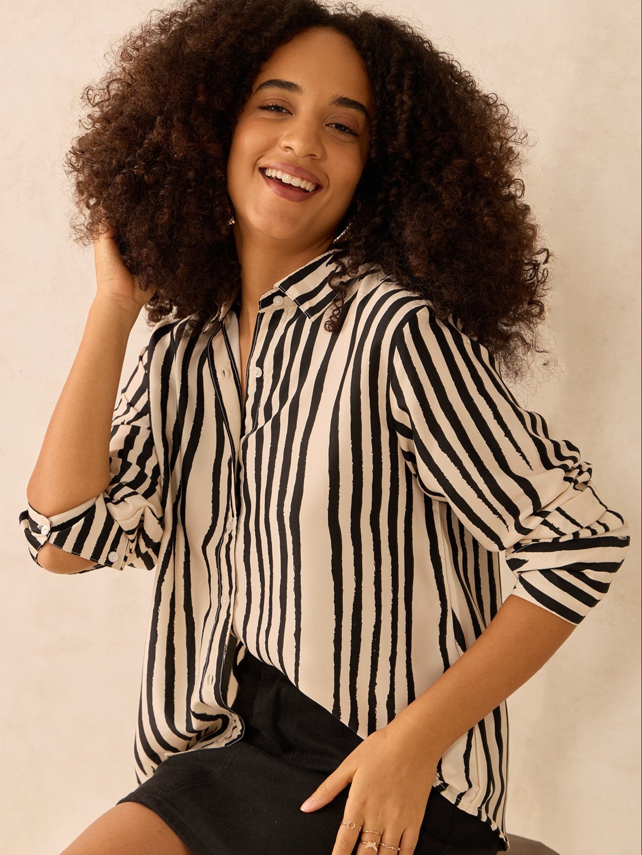Beige Relaxed Fit Satin Shirt