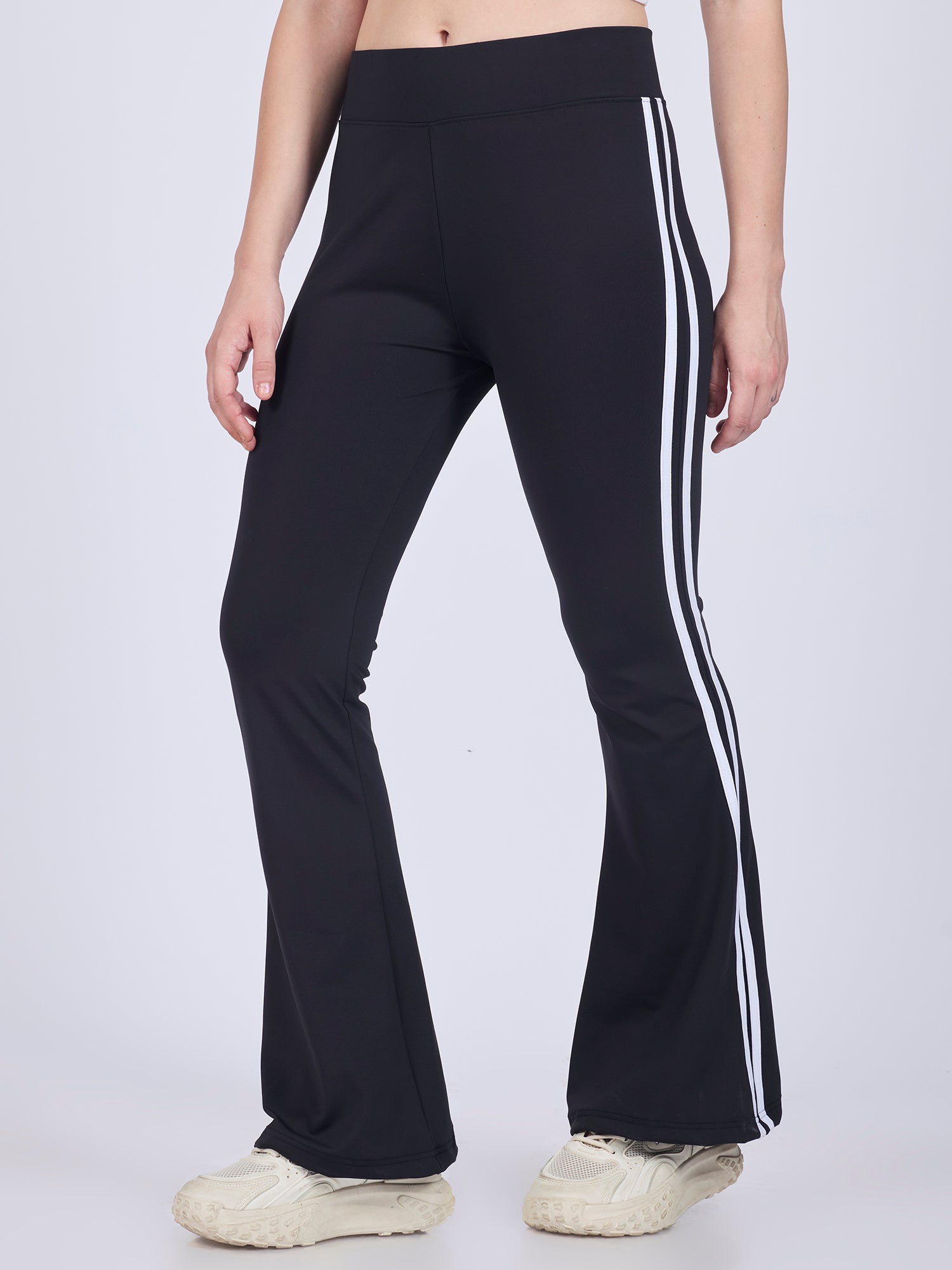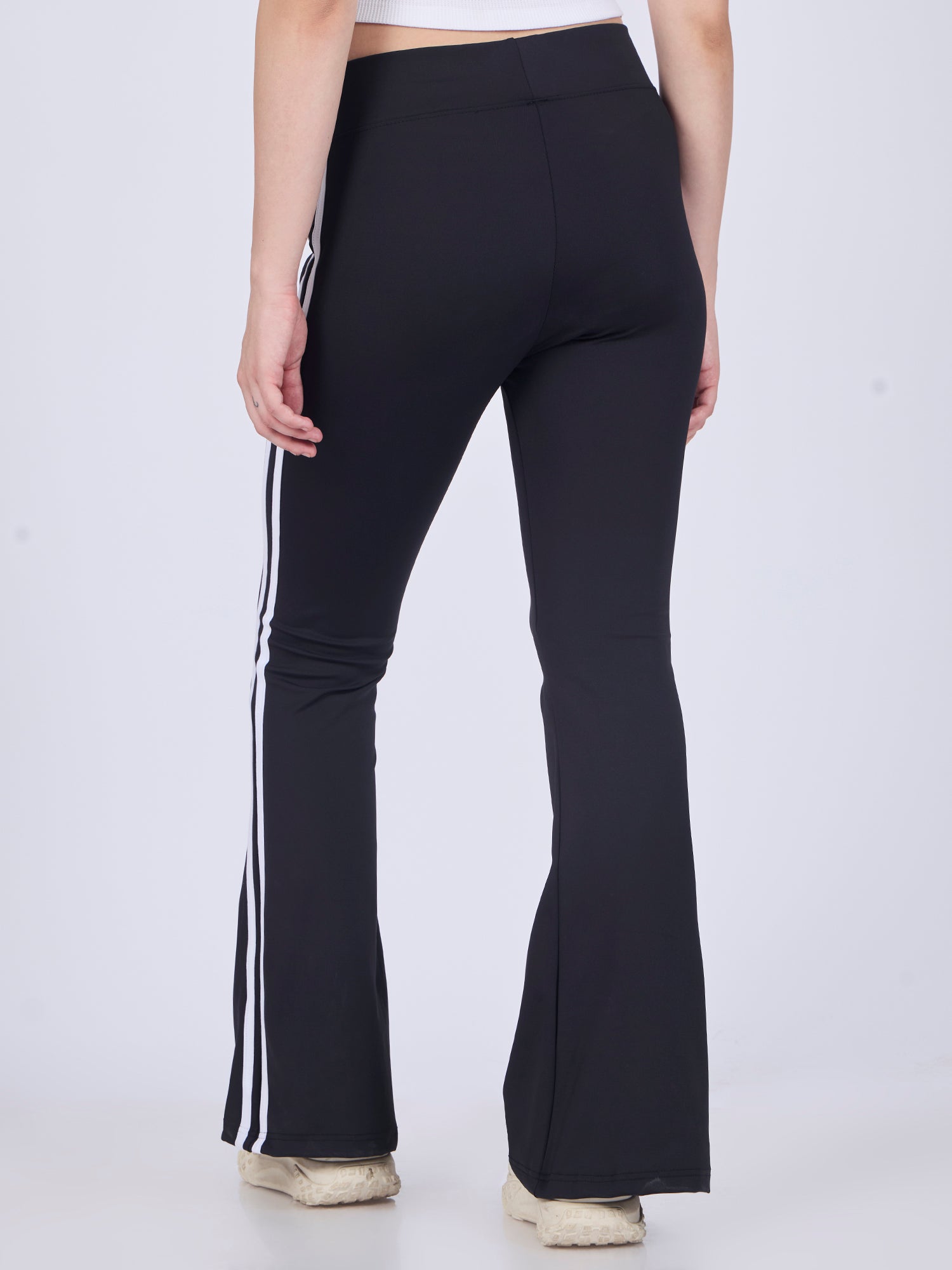 Don’t just show up. Walk in like the main event with Black Flared Contrast Striped Leggings. It’s a casual wear must. These leggings flex with you , from pre-party prep to post-party chill. Get dressed, get out.