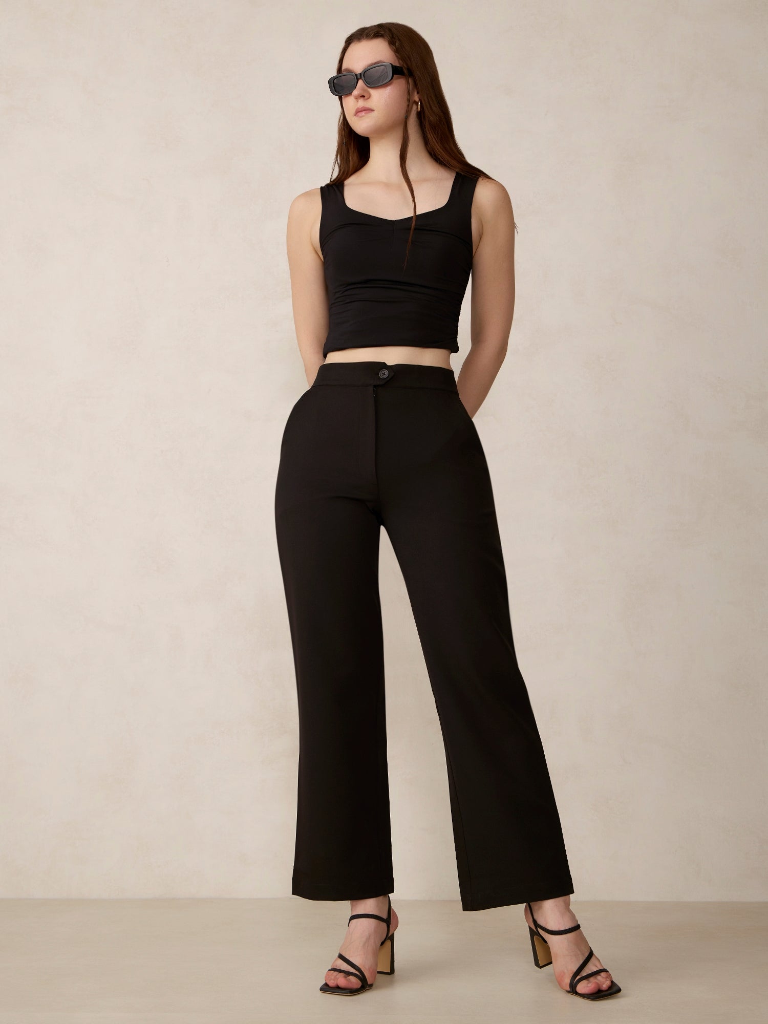For the girl who’s always out , Black Extended Waist Band Straight Fit Trouser is made for your casual wear moves. Throw it on and step out. Get dressed, get out.